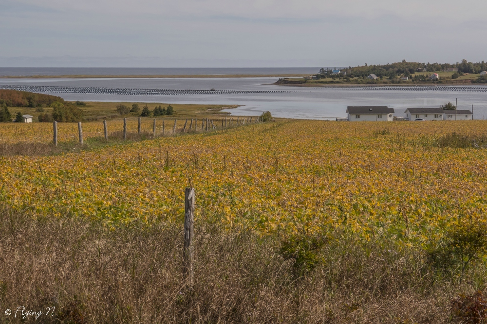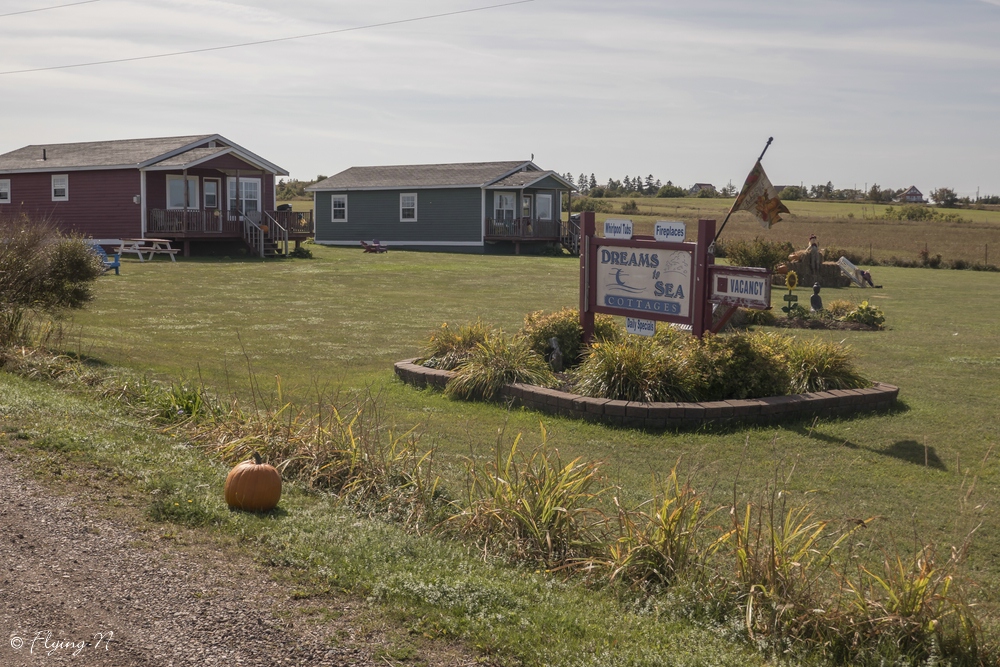 Wie uns Betty gestern erzählt hat, ist PEI eine sehr von Landwirtschaft, Tourismus und Fischfang geprägte Insel. Kartoffeln (immerhin ein Drittel der kanadischen Kartoffelernte kommt von hier!) sowie Hum-mer/Austern/Muscheln in erster Linie, die Touristen kämen nur im Sommer, ab September sei hier tote Hose. Und so ist es dann auch: Leere Straßen leere Parkplätze, leere Strände, jede Menge Cottages, geschlossene Geschäfte und Restaurants… Dabei ist schönstes Wetter, wir verstehen die Welt nicht mehr so ganz. Wir fahren immer an Feldern entlang in Richtung Norden, biegen dann nach links ab an die Nordküste (Gulf Shore Parkway East).