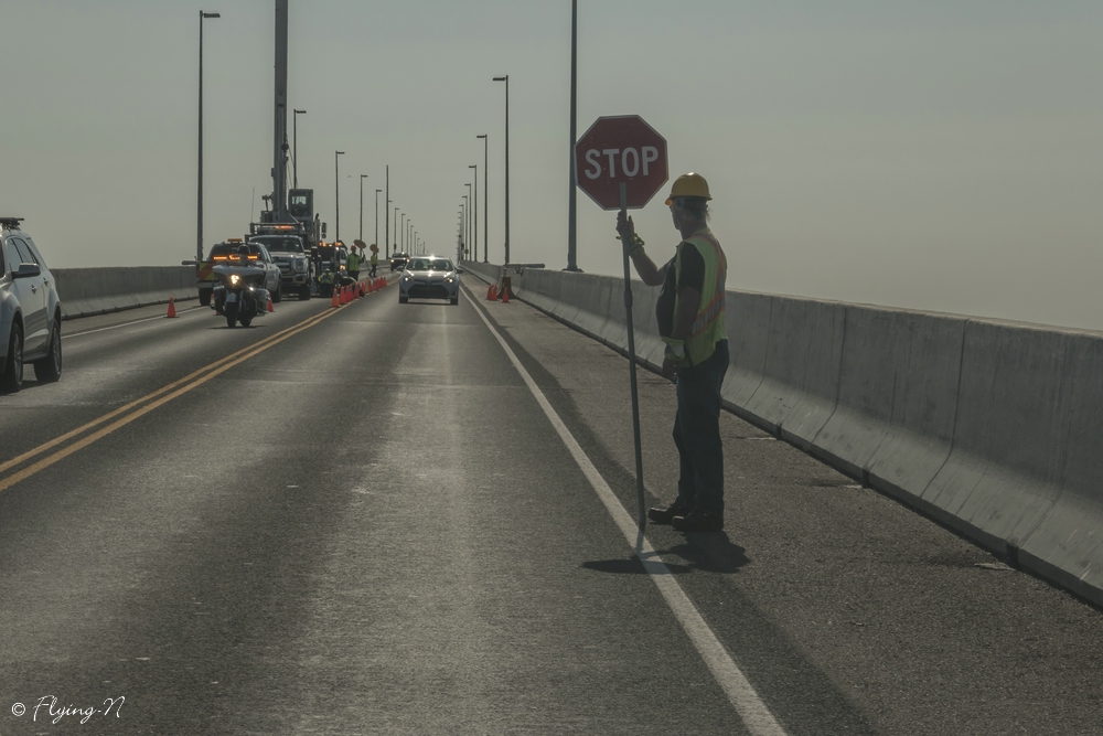 Also los, nun in Richtung Süden, wir fahren ein bisschen Zickzack, bis dann irgendwann die Confederation Bridge ausgeschildert ist. Von Boden-Carleton bis Bayfield ist sie etwa 13km lang und wurde 1997 nach vier Jahren Bauzeit eröffnet (Brückenmaut: 46,50$). Die Fahrt verläuft unspektakulär, aber auf der Brücke ist eine der unzähligen Straßenbaustellen, die wir auf dieser Reise passieren dürfen. So, nun schnell auf die Autobahn und ab nach Elmsdale.