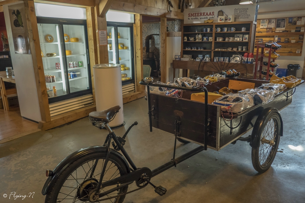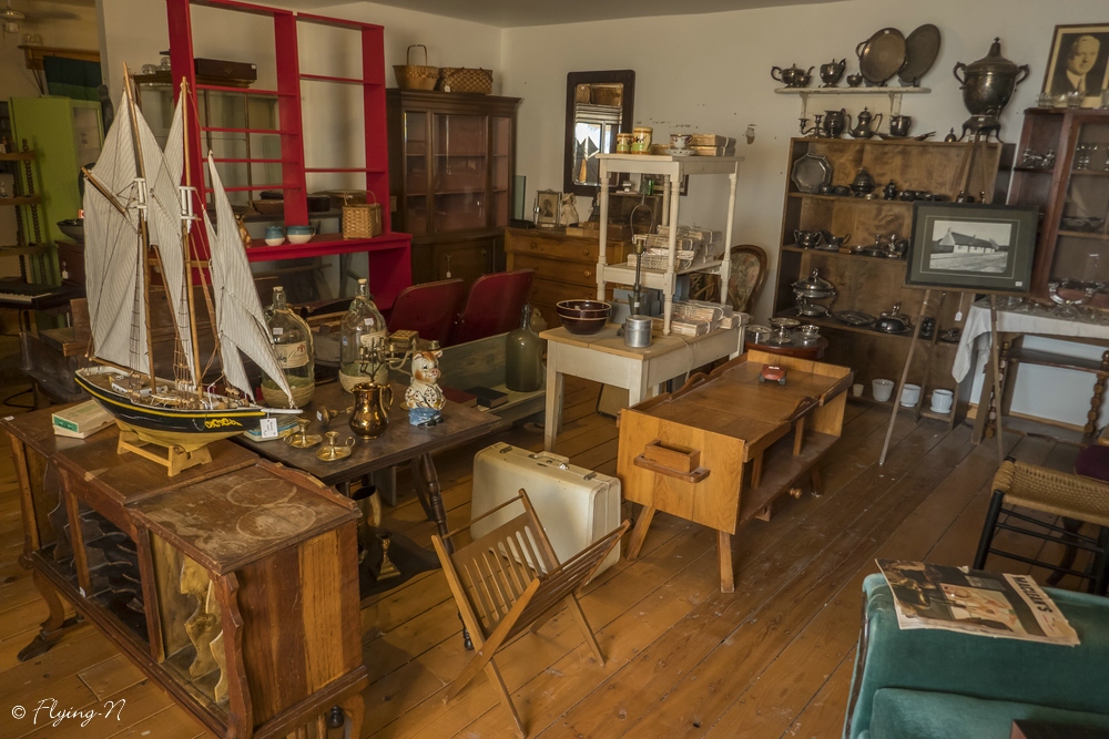 Kurz nach Truro verlassen wir sowieso schon die Autobahn und fahren auf dem Glooscap Trail (Hwy 2) weiter bis zu „The Dutch Cheese Farm“. Wir werden nicht enttäuscht! Eine große Auswahl an Käse und anderen typisch holländischen Leckereien wird angeboten (mit vielen Probier-Häppchen), und in der oberen Etage findet ein riesiger Flohmarkt statt, wo man die unmöglichsten Dinge erstehen kann, von Möbeln über Ladeninventar, Schreibmaschinen, bis zum Stahlhelm aus dem Ersten Weltkrieg… Schade, dass man auf Reisen immer so ein Platz- und Gewichtsproblem hat! Nun, etwas Käse und Fudge kaufen wir schon, der ist ja schließlich gegessen, bis wir wieder heim fliegen.
