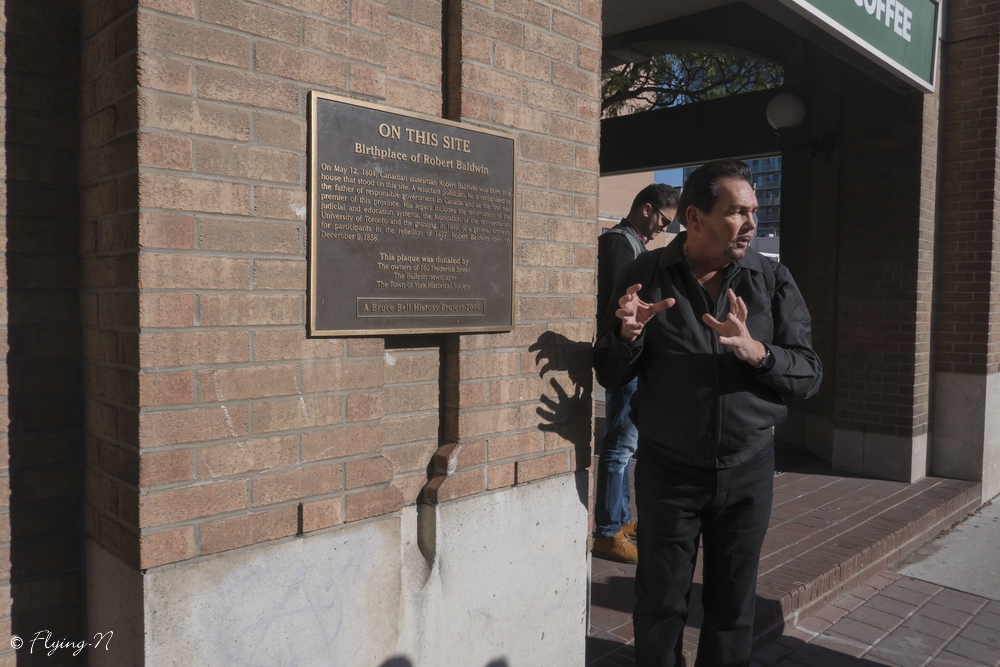 Pünktlich sind wir am St. Lawrence Market zum Start der Walking Tour, heute ist Bruce auch da, mitsamt einer internationalen Gruppe von „NATO wives“, wie er sie nennt: Partnerinnen von Männern, die hier in TO eine Fortbildung oder Konferenz haben und die deshalb parallel ein Damenprogramm bekommen. Kinder in der Karre sind auch dabei. Wir bezahlen also nur den Gruppenpreis (20$ statt 25$) und schon geht es auch los.