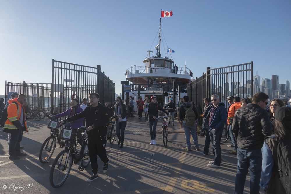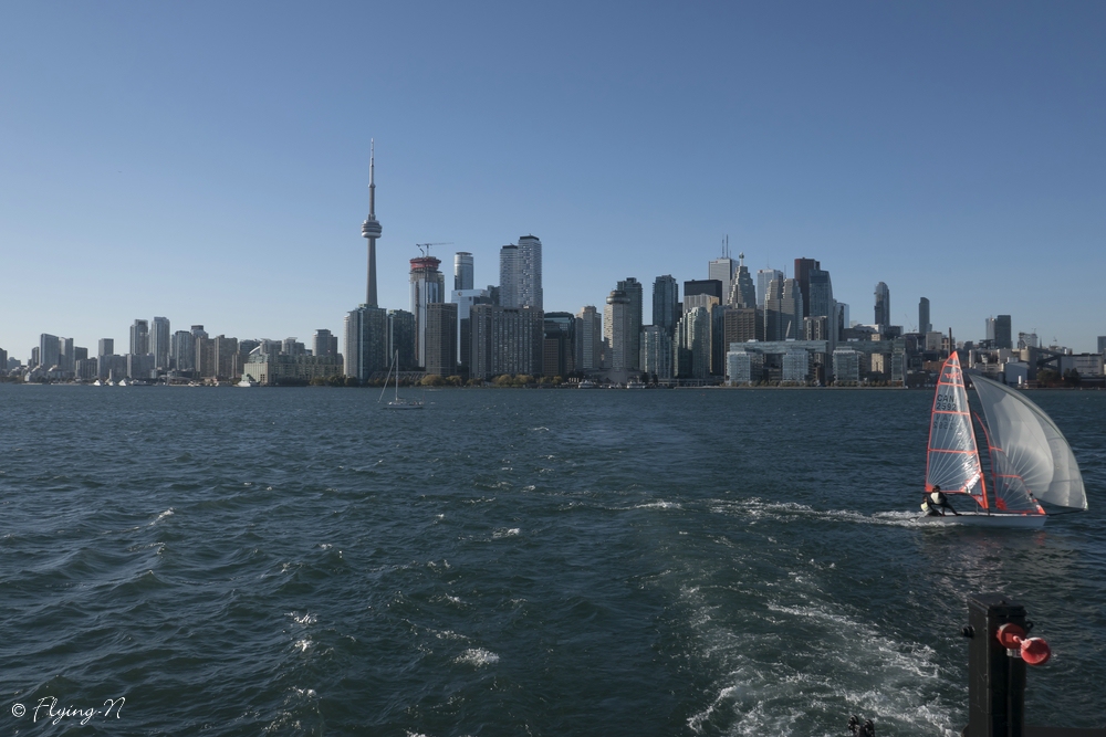 Was steht noch auf der Todo-Liste? Ich möchte unbedingt noch Skyline Bilder machen, dazu fährt man am besten auf die Toronto Islands. Wir sind jetzt zwar gerade ganz woanders, aber egal: Um 16:40 besteigen wir die Fähre am Queens Quay Ferry Docks Terminal, es ist noch ganz schön was los, obwohl die Sommersaison bereits zuende ist und damit auf den Inseln eigentlich alles geschlossen hat (Restaurants, Fahrradvermietung etc.) Aber wir wollen ja nur schauen und knipsen, und das geht natürlich.