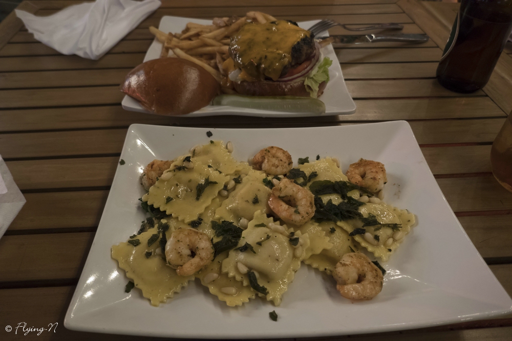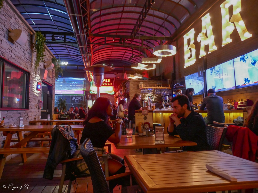 Nun würden wir aber schon gerne noch was richtiges essen, den ganzen Tag haben wir nur so im Laufen gesnackt. Wir gehen zum Fran’s Upper Deck, wo wir mit Blick nach draußen sitzen und sehr lecker essen. Nur dauert es ewig, bis unser Essen kommt. Anschließend steht wieder der lange Heimweg nach Mississauga an.