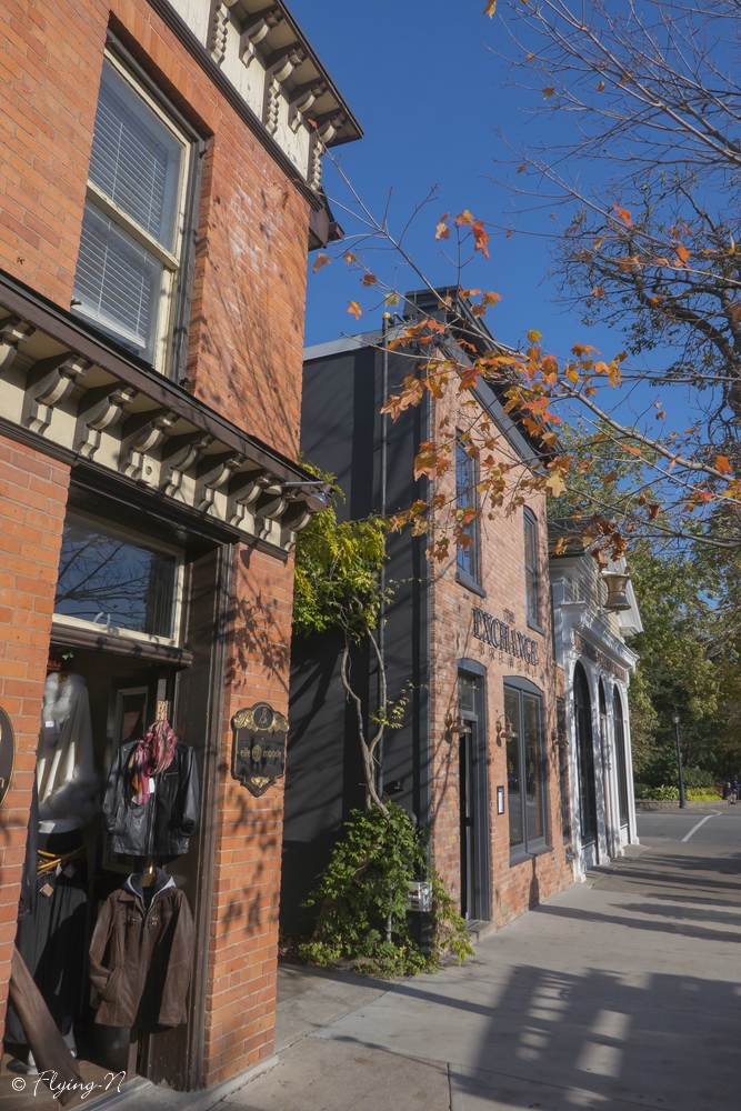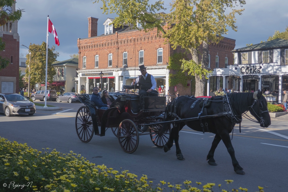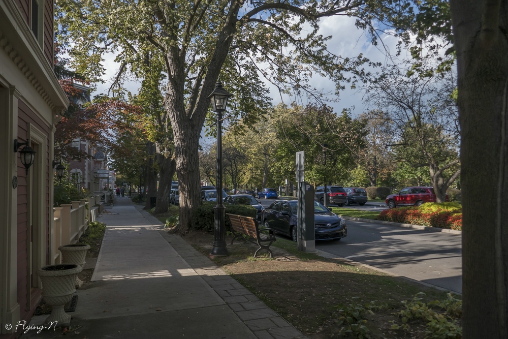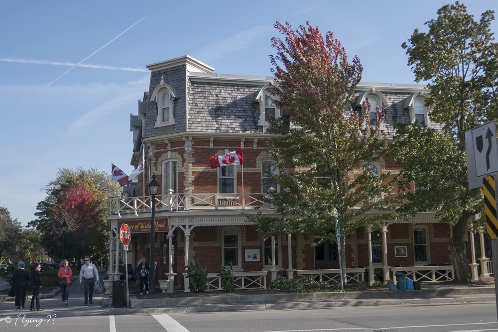 Anschließend fahren wir zwei weiter, durch Obst- und Weinplantagen, soweit das Auge reicht, für Weinliebhaber, die nicht selber fahren müssen, sicherlich eine interessante Gegend! Wir erreichen Niagara-on-the-Lake, ein hübsches Städtchen, wo man durchaus gut bummeln kann (sehr touristisch). Wir stehen ewig in einer Eisdiele für ein Eis an. Es ist auch sonst in dem Ort sehr voll und die Parkuhr, die wir gefüttert haben, läuft nach einer Stunde ab, ok, das reicht uns auch.