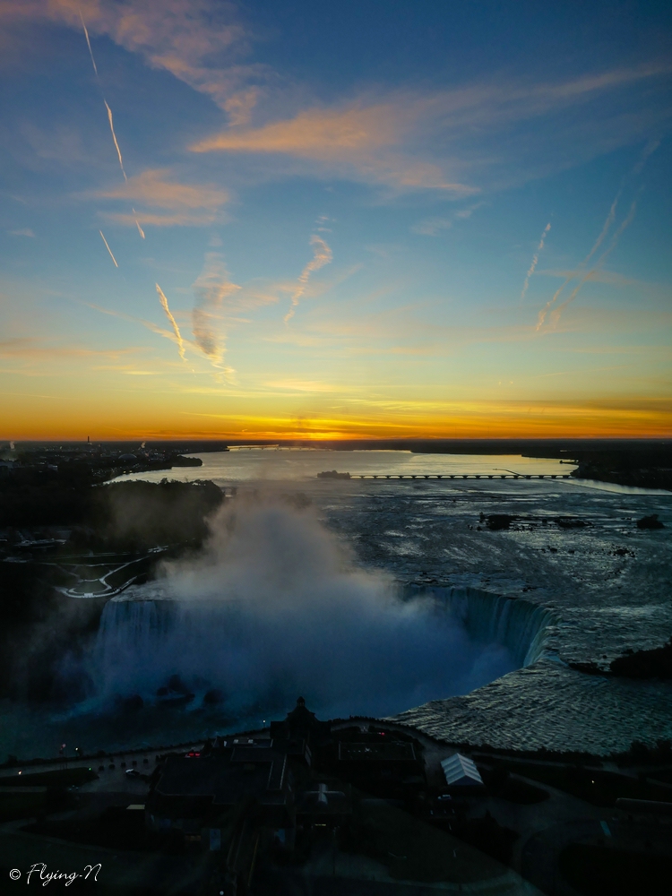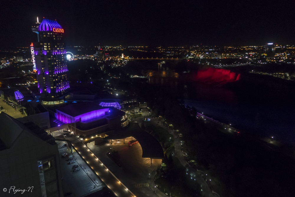 Aber, habe ich es schon erwähnt? Die Aussicht aus unserem Zimmer bei Nacht, die ist wirklich ganz besonders! Ich bin sehr happy, dass wir uns das zum Abschluss dieser Reise gegönnt haben und genieße das Farbspiel und Lichterfunkeln. Man kann sogar das Tosen des Wassers von hier oben hören, natürlich nur ganz leise.