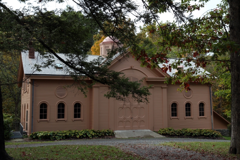 Bei Rhinebeck fahren wir nordwärts und auf dem Weg nach Germantown entdecken wir einen Hinweis auf ein Historic Monument – den Montgomery Place –, dem wir folgen. Zuerst verpassen wir die Einfahrt, also bei einer Kirche gedreht und diesmal reingefunden. Es geht über eine breit angelegte Allee durch bukolische Landschaften mit Obstgärten zu einem leeren Visitor Center.