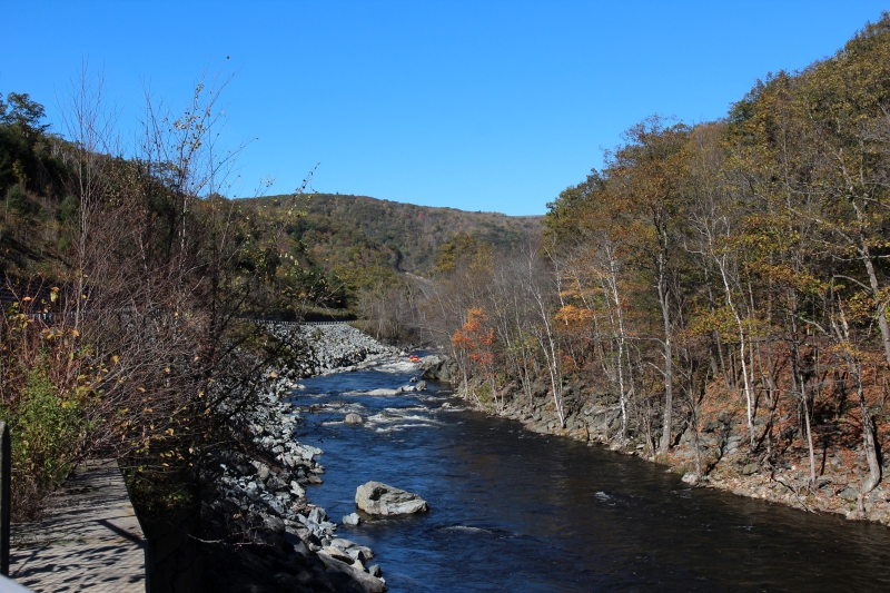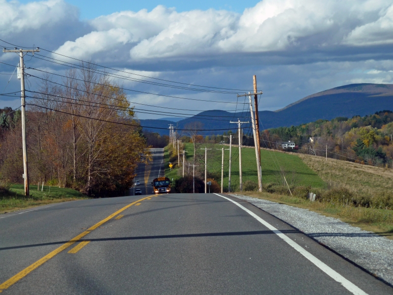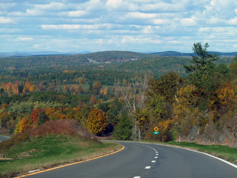 Auf dem Weiterweg folgen wir zunächst dem Navi, das uns anders als von mir ausgeguckt nicht am Hudson River entlang, sondern den Taconic State Parkway, eine sehr schön angelegte Strecke mit zwei tollen Aussichtspunkten. Als uns das Gerät nach Verlassen des Parkways wieder in die Pampa schicken will, ignorieren wir das und fahren den nach Karte gefundenen Weg – was sich als Fehler herausstellen sollte. Das Navi wollte uns wohl möglichst lange im Staat New York halten, wo auf den Landstraßen fast durchweg 55 mph erlaubt sind. So fuhren wir durch Massachusetts mit vielen 45er und gar 40er Beschränkungen. Außerdem mußten wir uns durch Pittsfield kämpfen, wo Baustellen den Verkehr auch nicht beschleunigten.
