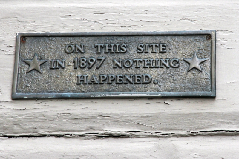 Am Rand gibt es einen Zaun, der bei direkter Draufsicht aussieht, als ob sich unregelmäßig verteilte weiße Flecken darauf befänden - schaut man aber flach am Zaun entlang, entdeckt man plötzlich alle möglichen historischen Verkehrsmittel. "Story Telling Fence" nennt sich das. Anschließend gehen wir über die Brücke in Richtung College Hill. Auf dem Hinweg kommen wir in der Thomas Street am Fleur de Lys vorbei, einem berühmten putzigen Fachwerkhaus.