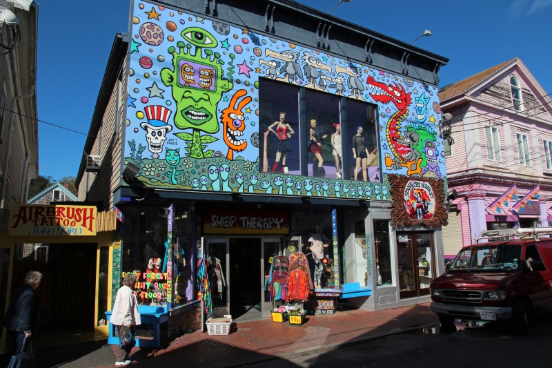 In Provincetown finden wir einen öffentlichen Parkplatz für den schlappen Preis von 6 USD. Wir gehen die Hauptstraße des Ortes auf und ab und suchen u.a. nach einigermaßen ansehnlichen Postkarten – ein hoffnungsloses Unterfangen. Auch sonst kann uns der Ort nicht für sich einnehmen. Er gleicht den weltweit üblichen Touristen-Strandorten mit überteuerten und überwiegend wenig qualitätsorientierten Läden. Das findet man genauso an der Adria, der Côte d'Azur und sonstwo am Meer. Dafür gibt es aber ein ganz passables Rathaus mit öffentlich zugänglichen Toiletten.