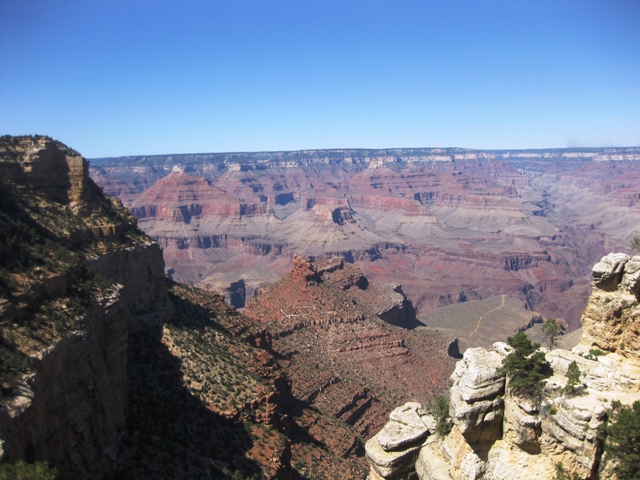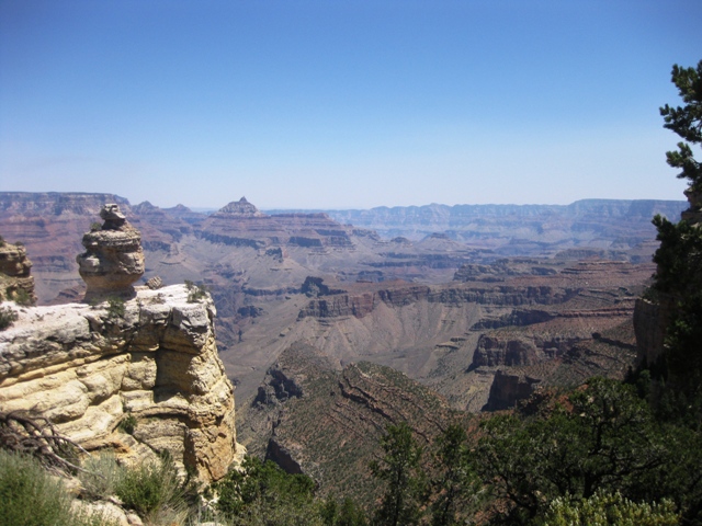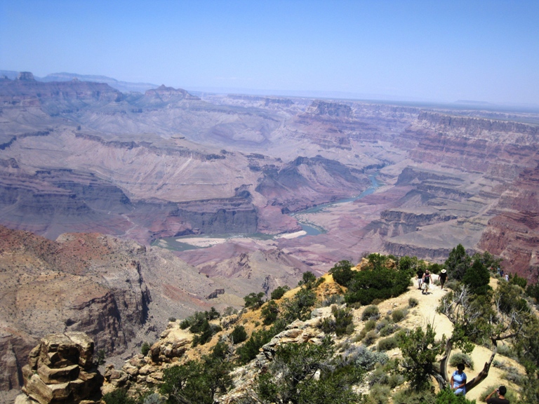 Am Visitorcenter waren Fotos der jeweiligen Aussichtspunkte zu begutachten. Das fanden wir ganz gut, denn so konnte man sich schon einen Eindruck verschaffen, ob man den jeweiligen Punkt für erwandernswert erachtet. Das „Problem“ an diesem Tag war, dass es sehr heiß war (über 30 ° im Schatten) und man sich schon überlegen musste, welche Wanderung man tatsächlich unternimmt.