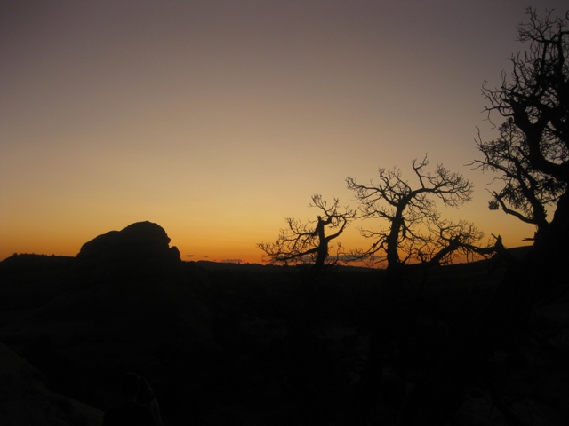 Als sie sich etwas ausgeruht hatten und wir auch von Ihnen noch ein paar Fotos mit dem Delicate-Arch gemacht hatten, machten wir uns mit 2 Taschenlampen bewaffnet gemütlich auf den Weg nach unten. Die brauchten wir auch, da wir uns natürlich inzwischen viel zu erzählen hatten und wir deshalb auch die 45 Minuten nach unten brauchten. Als wir fast unten waren und es schon richtig dunkel war, kam uns seltsamerweise eine Gruppe mit ca. 10 Kindern entgegen, die auf dem Weg nach oben war!?