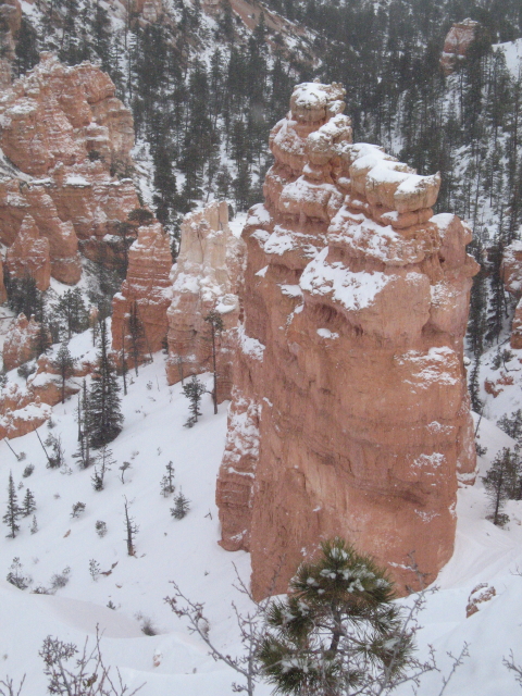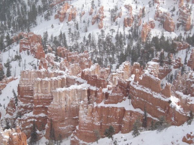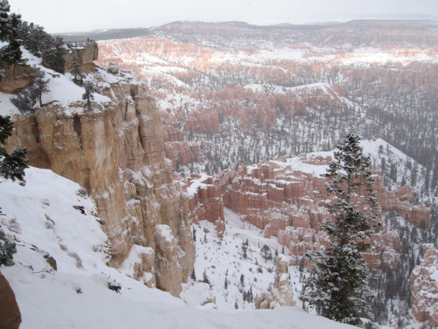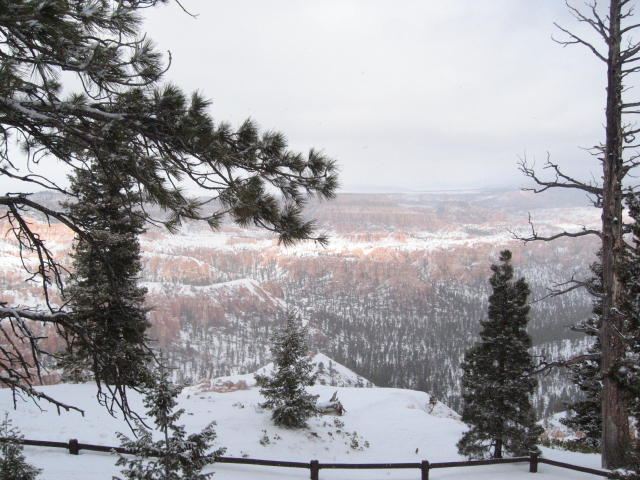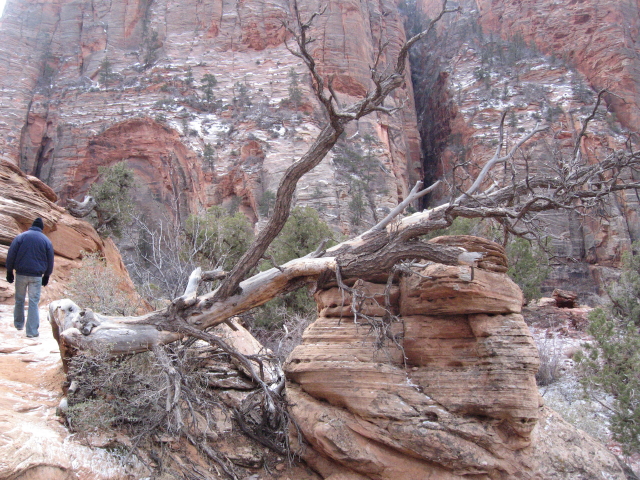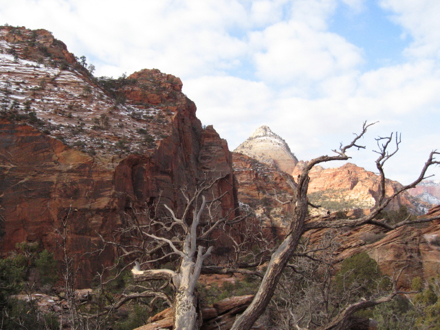 Das erste Stück der Fahrt ist noch ein bißchen lanweilig, aber als die Gegend hügeliger wird, gibt es wieder viel zu sehen. Auf den Bergen liegt Schnee und nach knapp drei Stunden erreichen wir den Zion. Durch das Umstellen auf Utah-Zeit ist es aber bereits fast 15 Uhr. Wir fahren den Zion Scenic Way mit dem Chevy bis zum letzten Aussichtspunkt. Der Shuttle verkehrt im Winter ja nicht und auch sonst ist wenig los. Leider liegt nicht sooooo viel Schnee, wie ich es erwartet habe, aber der Park bietet trotzdem natürlich ein ganz anderes Bild, als im Sommer.