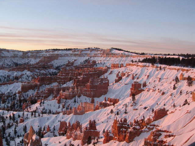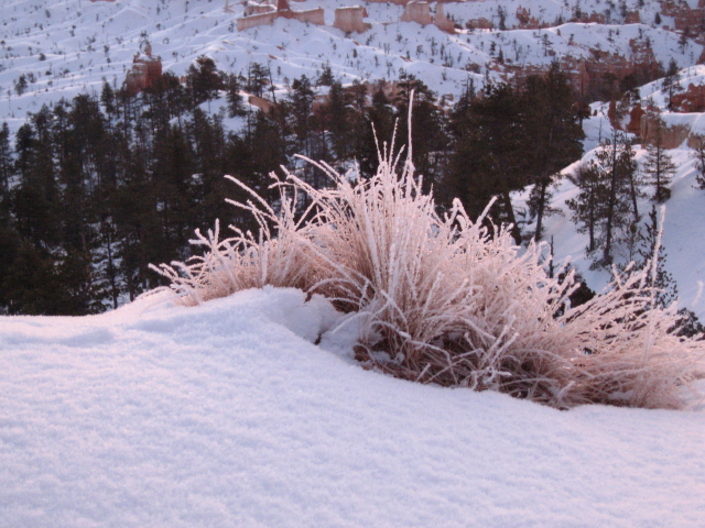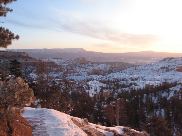 4. Tag - 23.01.2008Gegen 3 Uhr wache ich - mal wieder - auf. Diesmal aber, weil ich mich gerade fühle, wie im Märchen "Die Schneekönigin" in deren Eispalast. Im Zimmer ist es eisig und ich tappe also im Dunkeln Richtung Klimaanlage und stelle sie auf "Warmluft-Pusten". Während ich mich schon auf mollige Wärme freue, dringt eine mir bekannte Stimme unter der Bettdecke hervor "Was machst Du denn?" Ich "Heizung an" Die Stimme "warum das denn, um Gottes willen?" Ich: "weil mir kalt ist" (leicht genervt) Die Stimme "was machst Du denn nachher im Bryce? Erfrieren?" (noch genervter). Mich einem hörbaren "pffffff" lege ich mich wieder hin und schlummere noch ein Weilchen. Um 6:30 Uhr ist es zwar im Zimmer warm, aber zwischen dem Euch bekannten Paar etwas frostig. Als Friedensangebot gibt es von mir einen warmen Kaffee aus der zimmereigenen Maschine. Damit ist der Herr des Hauses erstmal wieder gnädig gestimmt.
