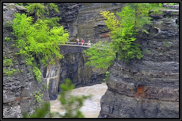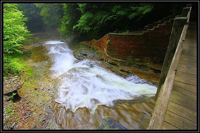 Unser nächster Stopp ist somit an den Upper Falls, diese werden von den meisten Leuten besucht die von New York nonstop zu den Niagarafällen durchfahren. Das Portage Viadukt der Erie Lackawanna Eisenbahnlinie im Hintergrund wirkt im ersten Moment zwar etwas fehlplatziert und verschandelt einem jedes Foto, erst auf den zweiten Blick kann ich mich irgendwie damit anfreunden. Allerdings muss ich sagen, das kackbraune Wasser des Geneese Rivers ist nicht unbedingt förderlich um einen zu beeindrucken ...