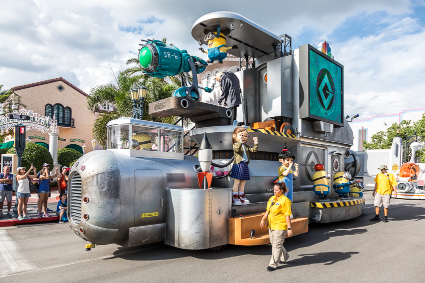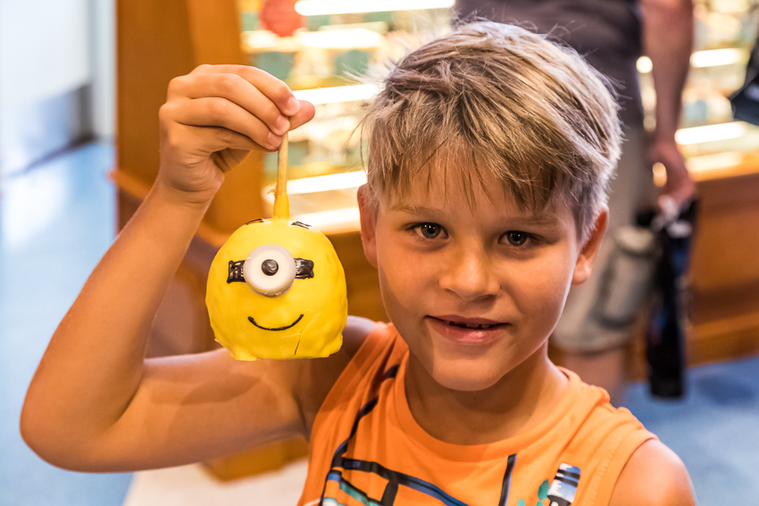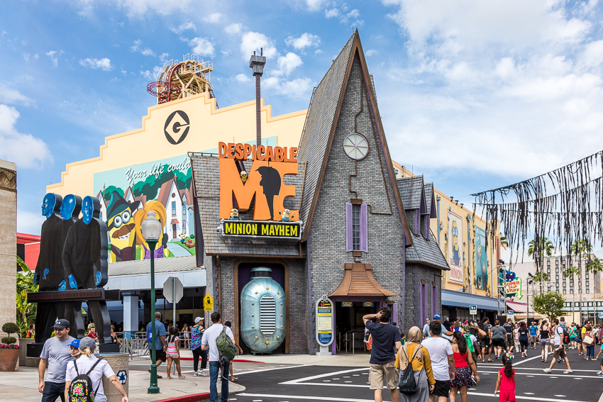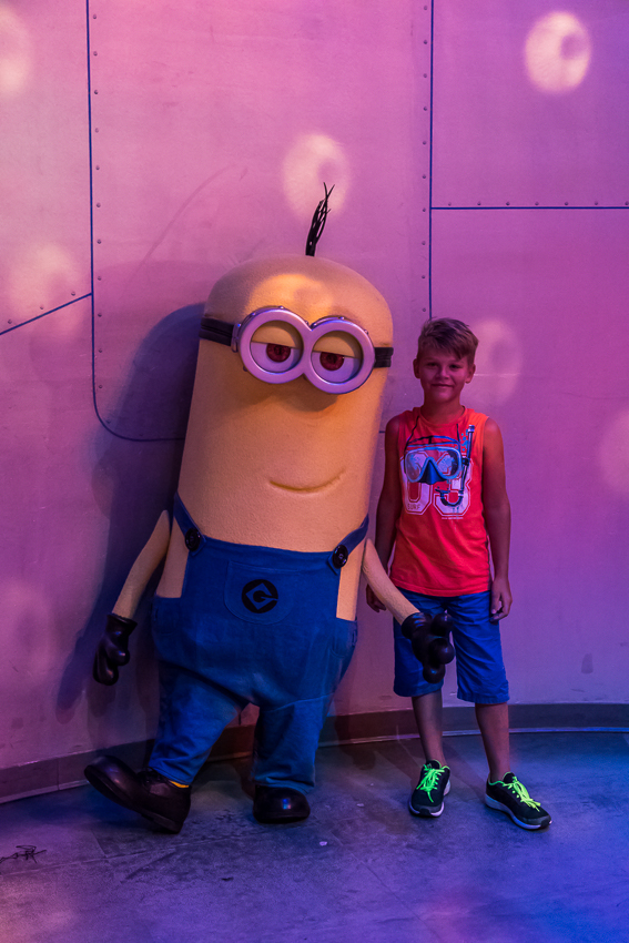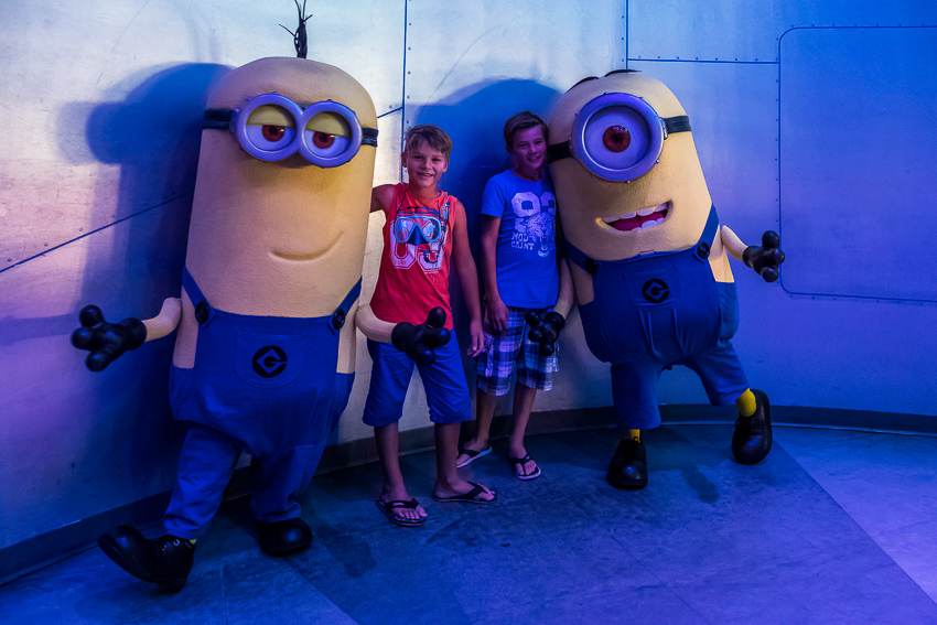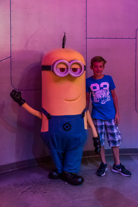Ein paar Meter weiter kamen wir dann wieder bei „The Wizarding World of Harry Potter - Hogsmeade“ an. Wir bestiegen den „Hogwarts Express“ und fuhren zurück zu den „Universal Studios“. Dort wollten Tom und Paul noch einmal einige Highlights der beiden vergangenen Tage machen. Also fuhren wir auch hier noch einmal einen Teil der besten Rides, angefangen von „Harry Potter and the Escape from Gringotts“, „Revenge of the Mummy“, dem „Hollywood Rip Ride Rockit“, „Shrek 4-D“ und zu guter letzt: „Despicable Me Minion Mayhem“. Paul kaufte sich im angeschlossenen Minions- Souvenirshop von seinem Urlaubsgeld noch eine schöne Kakaotasse. Danach war Schluß, Birgit und ich waren klinisch tot - die beiden Jungs hingegen noch in erstaunlich guter Verfassung. Aber nun war es endgültig genug für heute. Birgit und ich beschlossen zurück ins Hotel zu gehen. Dort gab es wieder eine Kleinigkeit zu essen und allzu viel Kalorienzufuhr hatten wir heute ja noch nicht.