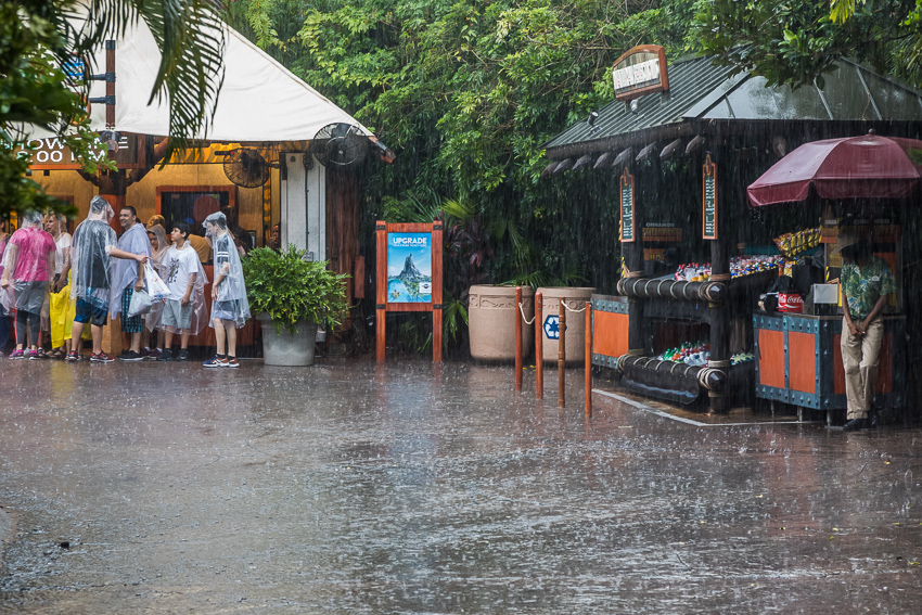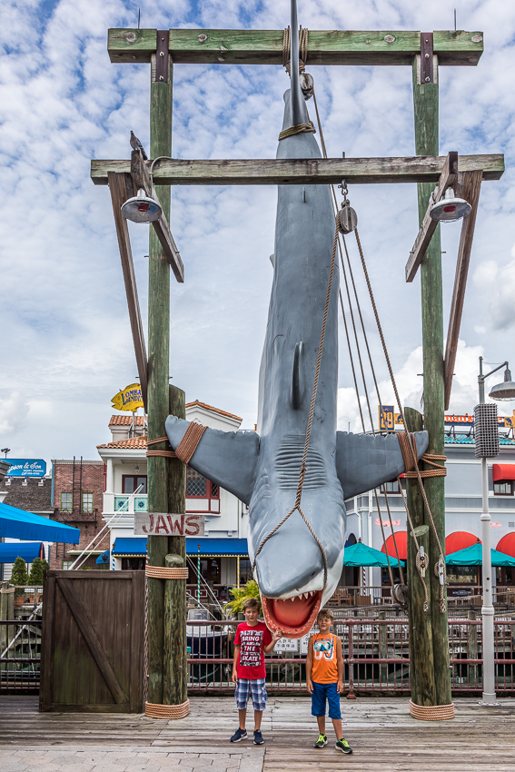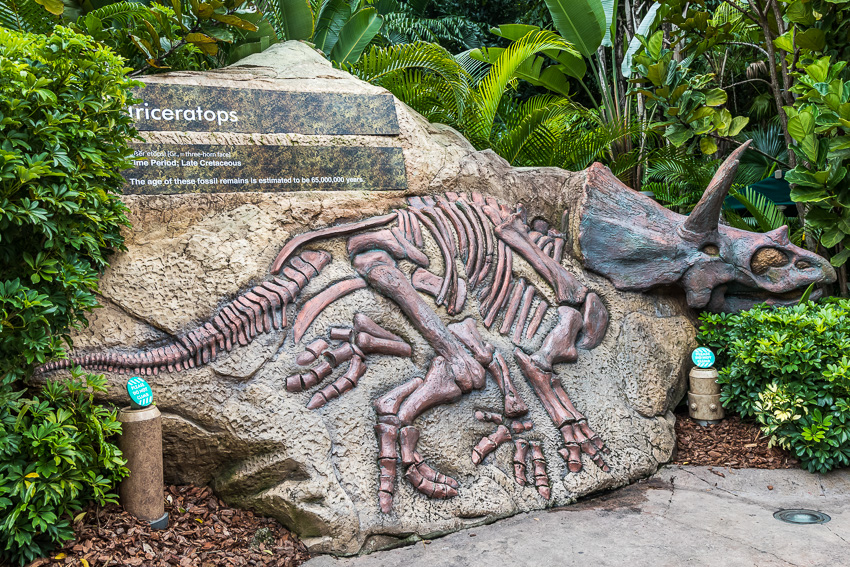Jurassic ParkWir begannen mit dem Besuch des „Raptor Encounter’s“. Man konnte zusehen wie im Labor ein Raptoren-Junges aus einem Ei schlüpfte, man konnte Dinoeier mit Hilfe von Scannern untersuchen und es gab Dinosaurier- Skellette zu bewundern. Das Highlight im Jurassic Park ist aber eindeutig das „Jurassic Park River Adventure“. In riesigen Booten fährt man durch den „Jurassic Park“ in dem ein T- Rex ausgebrochen ist. Am Schluß der Fahrt stürzt man dann mitsamt Boot und Rest der Mannschaft 26 Meter in die Tiefe. Durch den Sturz selbst wurden wir nur relativ wenig naß, aber mittlerweile hatte es blöderweise leicht das Regnen angefangen. Ein typischer Florida Regenschauer und da es am Schluß der Fahrt so langsam anfing aus allen Eimern zu kübeln, stellten wir uns für die nächste halbe Stunde im „Gift Shop“ unter. Der lief gegen Ende des Regens Gefahr, selbst abzusaufen, das Wasser stand vor dem Eingangsbereich ca. 10cm hoch. Als letztes besuchten wir dann noch die „Pteranodon Flyers“, ein Ride für kleine Kinder. Trotz mittlerweile wieder schönstem Wetter, mussten wir noch eine viertel Stunde warten, bis die Gewittergefahr vorbei war. Dann konnten die zwei Jungs die 80 Sekunden dauernde Fahrt in luftiger Höhe von ca. 10 Meter Höhe genießen.