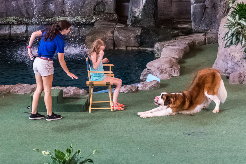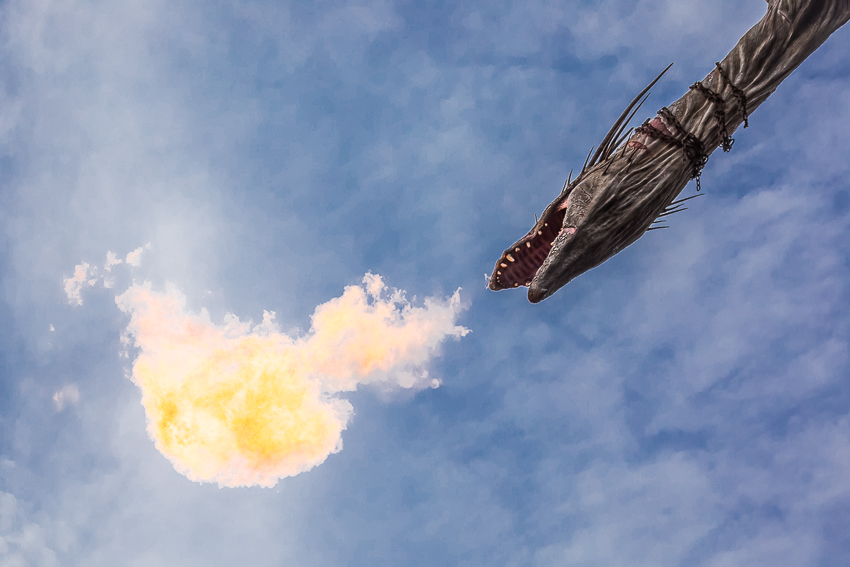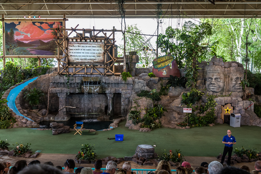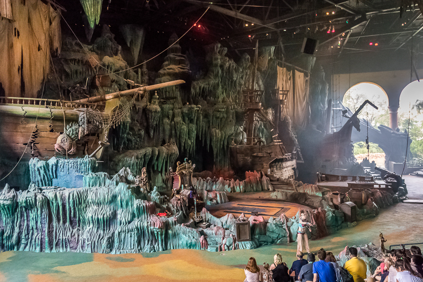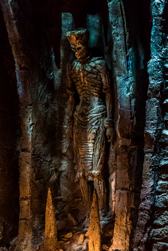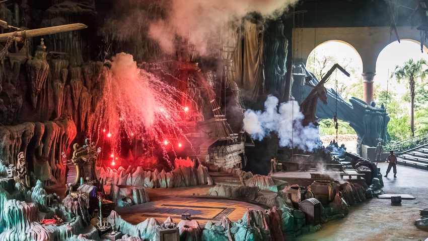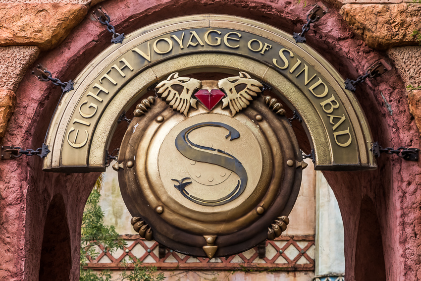 The Lost ContinentAuch hier gab es zwei größere Attraktionen, wobei wir „Poseidon’s Fury“ aus Zeitgründen ausfallen ließen. Da wir noch immer leicht naß waren - aufgrund des immer noch bewölkten Himmels trockneten wir nicht ganz so schnell - ersparten wir uns die 25 Minuten Wartezeit bis zur nächsten Show. Vielleicht klappte es ja noch in den nächsten zwei Tagen mit einem Besuch. Und auch das zweite Highlight konnten wir nur zum Teil anschauen: die für heute letzte Stundshow von „The Eighth Voyage of Sindbad“ hatte bereits um 16:00Uhr begonnen, mittlerweile war es 16:15Uhr. Trotzdem konnten wir noch rein und es uns am linken Rand der großen Tribüne bequem machen. Die schön gemachte Show mit Special Effects dauerte noch ca. 15 weitere Minuten, dann waren wir auch mit „The Lost Continent“ durch.