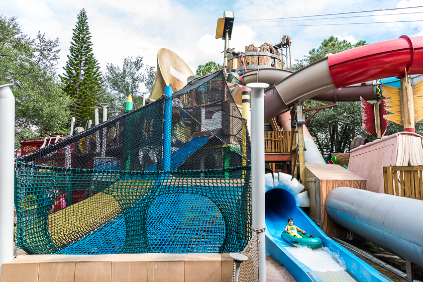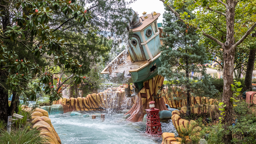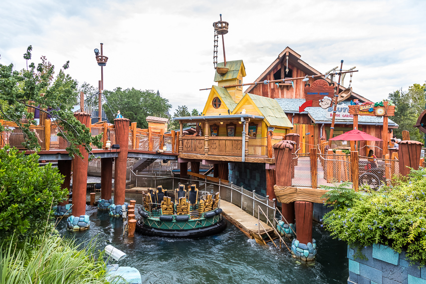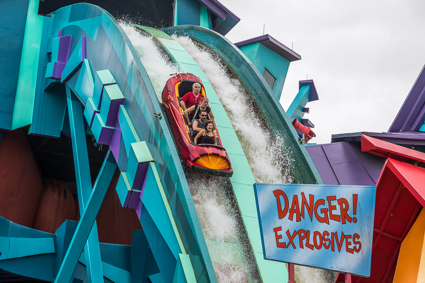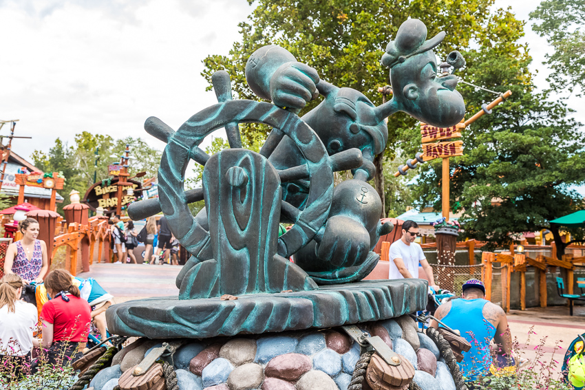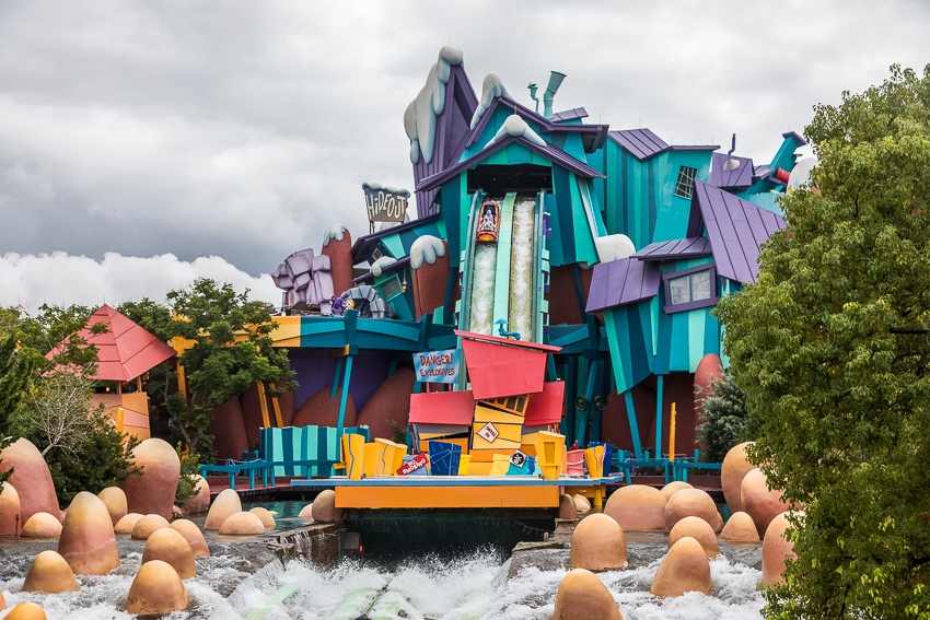 Toon LagoonDann kamen wir zu „Toon Lagoon“. Und hier passierte mir eine kleine aber feine strategische Fehlentscheidung. Gleich zu Beginn machten wir die „ Dudley Do - Right’s Ripsaw Falls“. Eine nette Fahrt in einem 4er Kanu mit einem Haken: man wir klitschnaß bis auf die Unterhose. Im wahrsten Sinne und ohne Chance auf Entkommen. als die Fahrt vorbei war kletterten wir triefend aus unseren Booten. Birgit warf mit ein paar todbringende Blicke zu und fluchte die nächsten 5 Minuten wie ein Rohrspatz. Aber hey, wir sind in Florida, da gehört etwas Wasser doch irgendwie dazu. „Popeye & Bluto’s Biege Rat Barges“ ließ ich dann aus bekannten Gründen besser links liegen. Auch dies war ein Water- Ride, bei dem es kein Entkommen gab und man unweigerlich bis tief ins Innerste durchnässt wurde. Ich wollte es ja nicht zu weit treiben. Der Rest von „Toon Lagoon“ war dann mehr für die ganz Kleinen und daher ging es weiter zu: