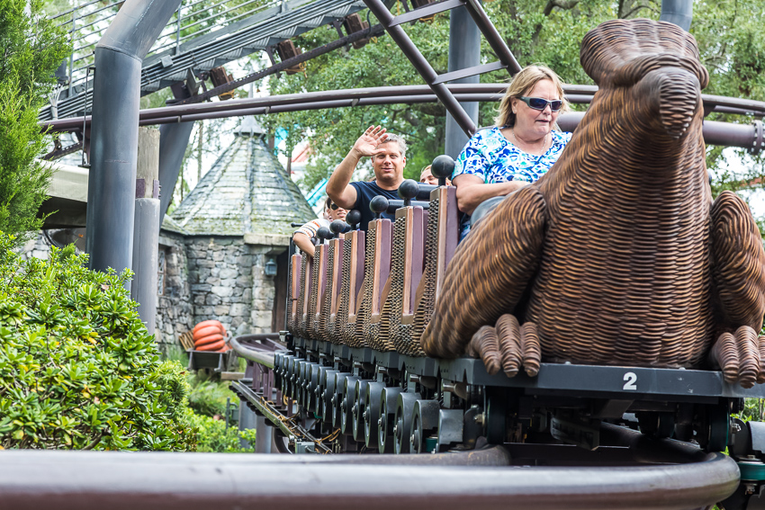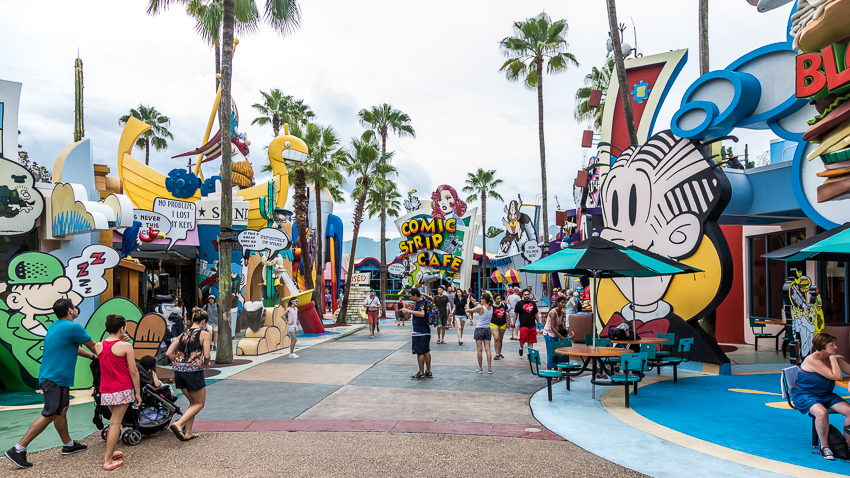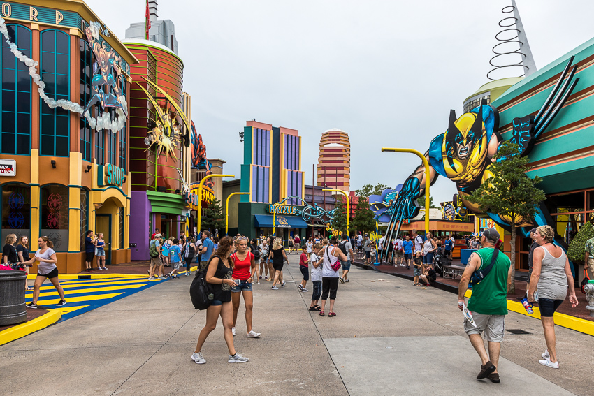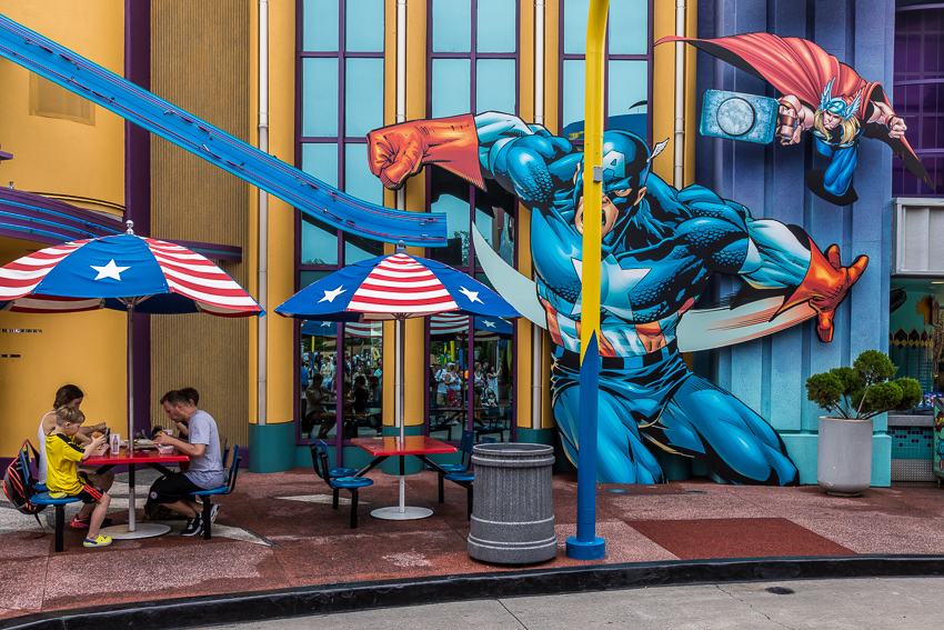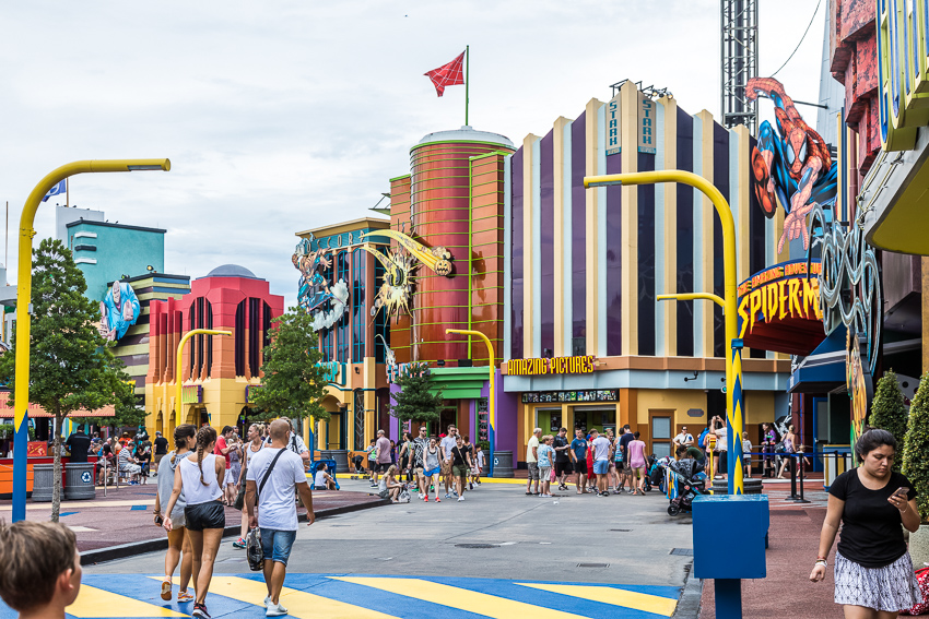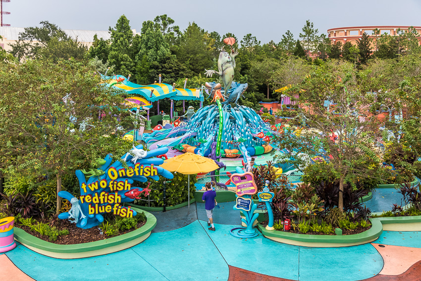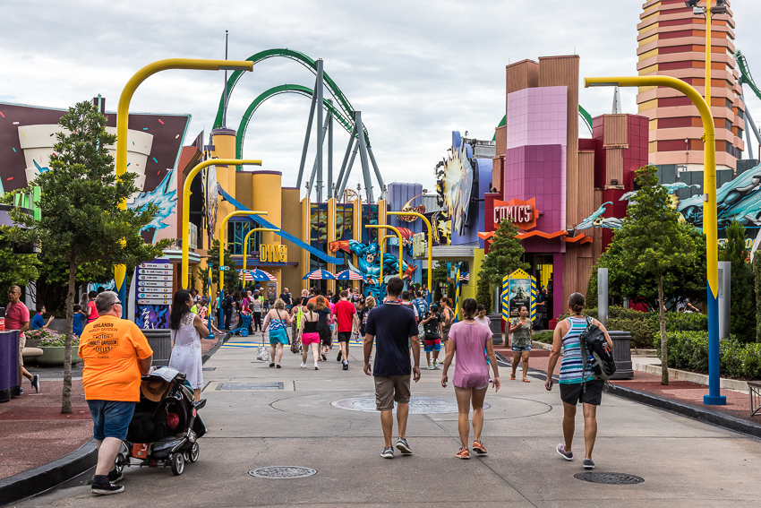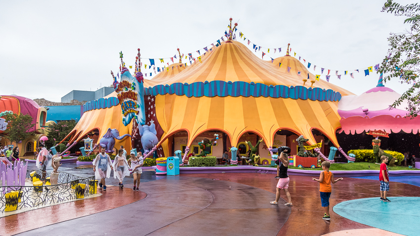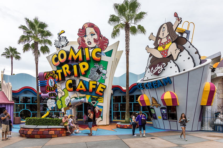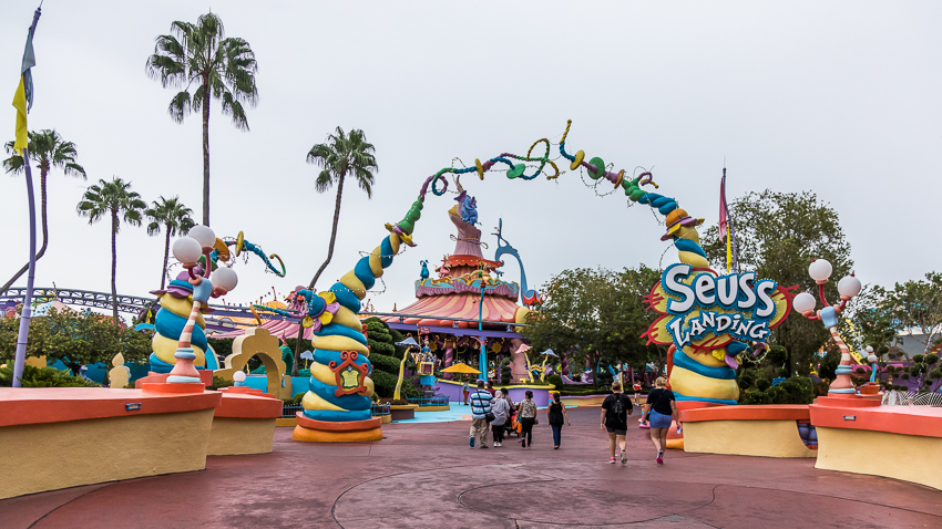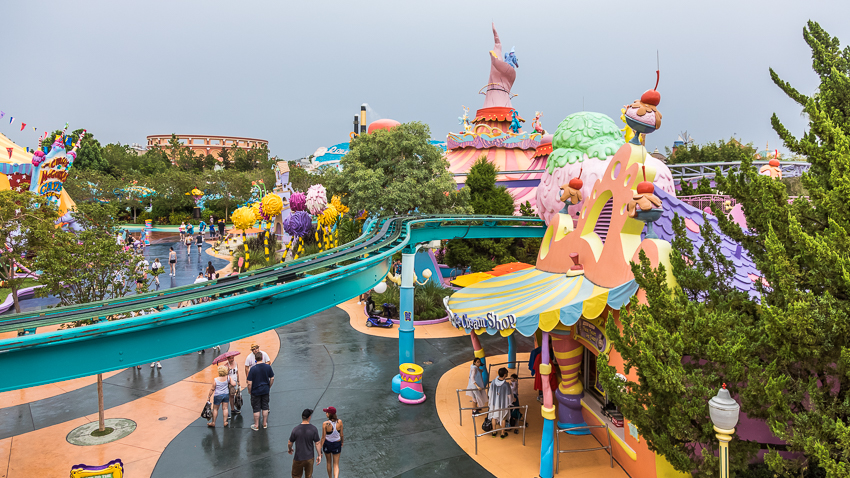 Seuss LandingDa auch dieser Themenbereich mehr für die ganz kleinen unter uns war, machten wir nur zwei Rides. Wir begannen mit „The Cat in the Hat“, einer ruhigen Fahrt durch die Geschichte von Dr. Seuss’s beliebten Kinderbuch. Wir kannten weder Buch noch Dr. Seuss und die Fahrt war auch schon etwas altbacken - Paul gefiel’s trotzdem. Der zweite Ride war dann „The High in the Sky Seuss Trolley Train Ride“. Dies war eine chillige und schöne Fahrt in luftiger Höhe. Man hatte einen tollen Überblick über „Seuss Landing“ und Teile des Parks. Da meine Füsse bereits anfingen mich zu quälen, hätte ich noch mehrere Runden in dem Teil fahren können. Aber es half alles nix, wir mussten weiter zum letzen Themenbereich: