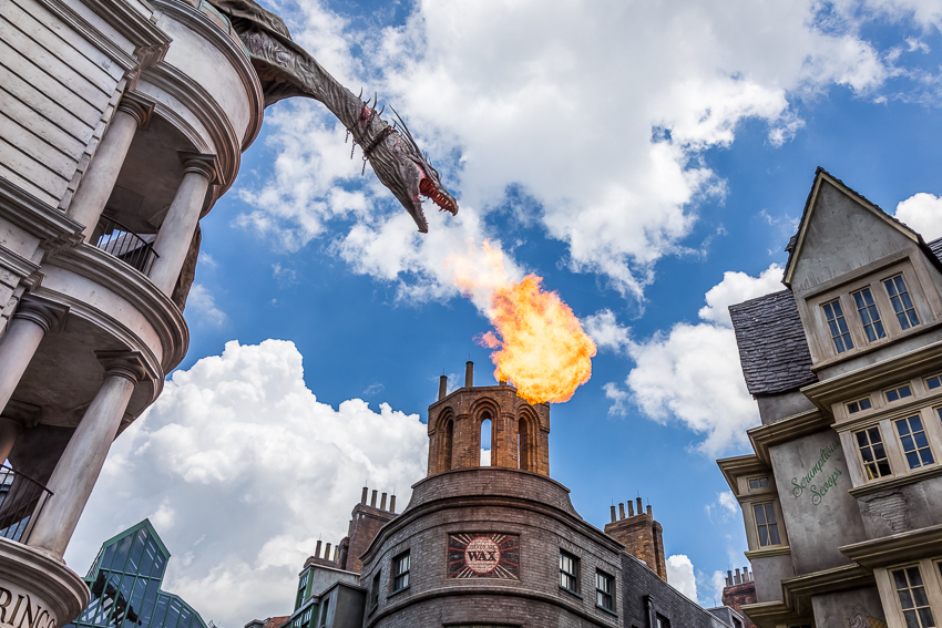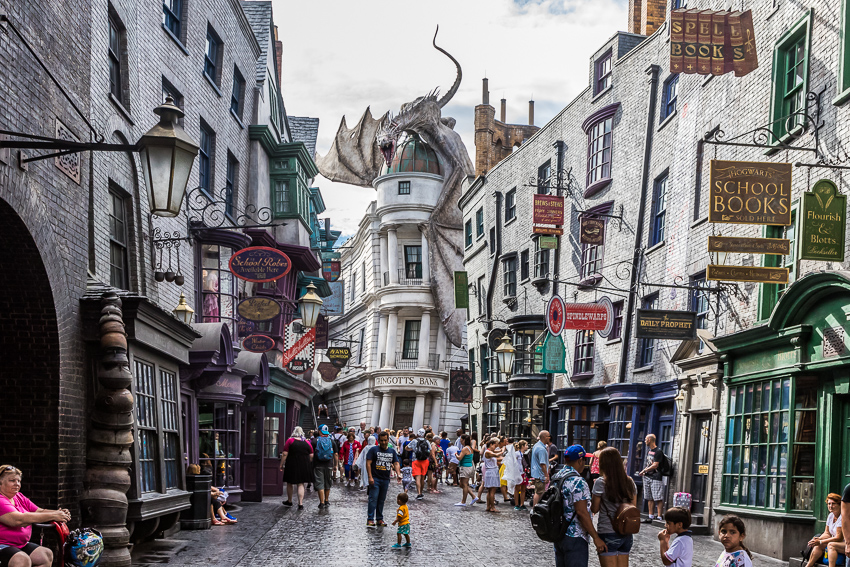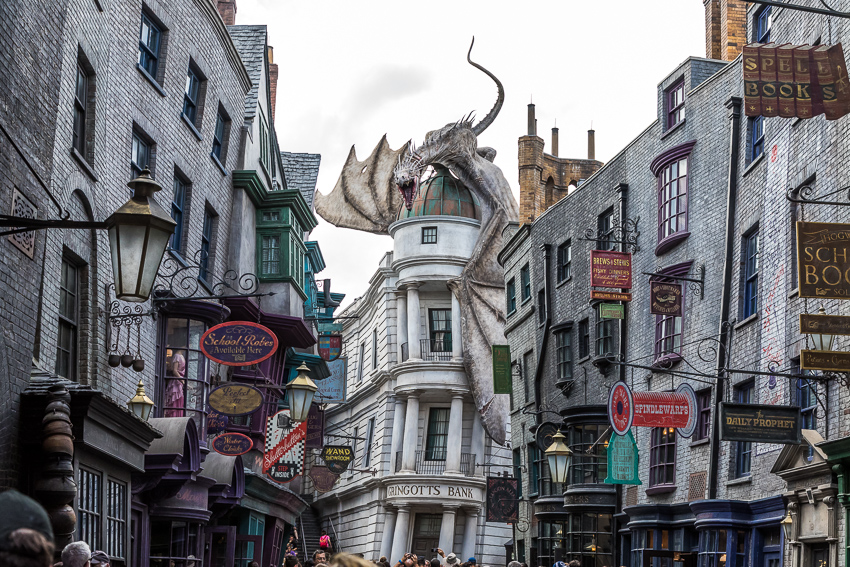 Und wieder stand ein aufregender und langer Tag bevor. „Island of Adventure“, der neuere und „actionlastigere“ der beiden Parks wollte erkundet werden. Unser letzter Besuch in „IoA“ war im Jahr 2000, die Erinnerung daran war also zum großen Teil schon verblasst. Obwohl der gestrige Tag nicht ohne war, wurden wir früh wach. Das Frühstück war relativ schnell „erledigt“ und wir mussten nur noch schnell unsere Morgentoilette hinter uns bringen. Dann waren wir auch schon auf dem Weg in die „Universal Studios Florida“. Wir mussten ja noch den gestern komplett ausgelassenen „The Wizarding World of Harry Potter – Diagon Alley" Themenbereich nachholen.