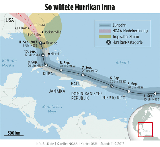 Im Hotel angekommen brachten wir nur kurz unsere sieben Sachen ins Zimmer und gingen dann gleich in die Lounge. Dort gab es leckere „Chicken Wings“ mit verschiedenen Dip- Saucen, irgendwelche Tortillia- rollen sowie ganz leckeren Tomaten / Mozzarella Salat mit kiloweise Knoblauch. Der Gestank würde sich vermutlich bis zu unserem hoffentlich am Sonntag stattfindenden Rückflug nach Deutschland halten. So langsam machte ich mir doch leichte Sorgen, seit Tagen war Hurrikan Irma Dauerthema auf sämtlichen Kanälen. Eigentlich ist Orlando da ja immer ziemlich auf der sicheren Seite, aber Irma schien sämtliche Rekorde zu brechen und steuerte direkt auf Florida zu. Und da wir ja ziemlich knapp gebucht hatten (die Schule begann Dienstag, wir kamen Montag zurück) und ich außerdem keine Lust auf irgendwelche Zusatzkosten hatte, wurde es nun doch langsam spannend.