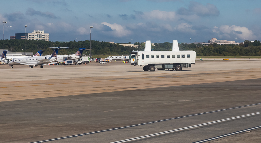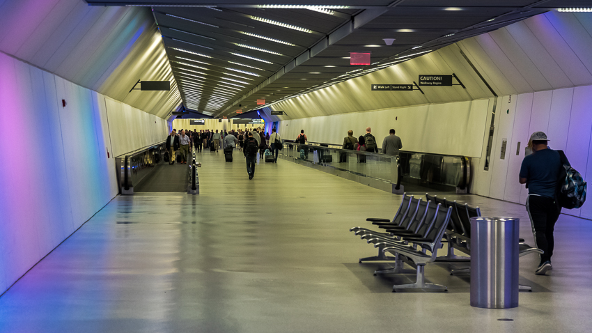 Dann gingen wir zu unserem Gate und warteten auf unseren Flug. Gleich gegenüber saß eine Familie aus Würzburg, die in der gleichen Situation waren wie wir. Nur das ihr Flug insgesamt 5x verschoben wurde. Wir unterhielten uns eine ganze Zeit lang bis dann pünktlich das Boarding begann. Auch der folgende zweistündige Flug verlief problemlos. In Washington / Dulles angekommen mussten wir das Gate von C nach B wechseln und durften daher 2x mit dem "Aero Train" fahren. Am Gate B47 angekommen kauften wir noch eine Kleinigkeit zu futtern - ein leckeres Sandwich und zum endgültigen Abschied auch noch einmal zwei „Double Chocolate Chip Crème Frappuccino“.