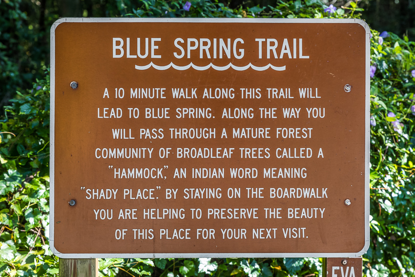 Gegen kurz nach 08:00Uhr checkten wir dann aus und fuhren zum „Blue Spring State Park“. Dieser öffnete um 8:00Uhr seine Pforten. Die Fahrt dauerte etwas länger als geplant und wir kamen um 09:00Uhr an der größten Quelle des St. John’s River an. Laut „Wiki“ beträgt die ganzjährige Temperatur der Quelle 23C° und es fließen tagtäglich 102 Millionen Gallonen Wasser in den St. John’s River. Der Parkplatz war noch relativ leer, was sich aber im Laufe des Vormittages noch ändern sollte. Die zweistündige geführte Bootstour um 10:00Uhr ließen wir links liegen und „wanderten“ stattdessen den schönen angelegten Trail Richtung Ursprung der Quelle.