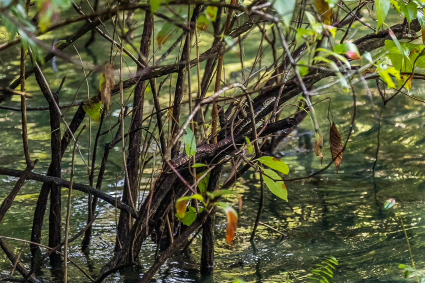 Paul wagte sich dann auch in die Fluten und schnorchelte an einer der vielen Einstiege am Fluss. Ca. 3m nebenan aalte sich eine ca. 1m lange Schlange in den Ästen knapp über der Wasseroberfläche. Ob das Teil giftig war oder nicht - wir hatten keine Ahnung. Tom war das Wasser zu kalt und Birgit und ich konnten uns weder mit Schlange nicht mit dem Wasser anfreunden. Außerdem hatten nur die Jungs Schnorchelausrüstung dabei. Irgendwann kamen wir dann am Ursprung der Quelle an und hier endete auch der Trail. Wir drehten um und liefen wieder zum Auto. Auf dem Weg dorthin wurde dann auch einstimmig beschlossen, Silver Springs den ursprünglich geplanten Besuch zu verwehren und stattdessen die Strände rund um St. Augustine unsicher zu machen.