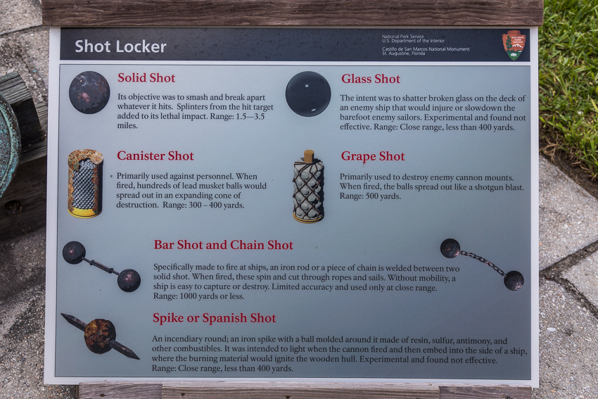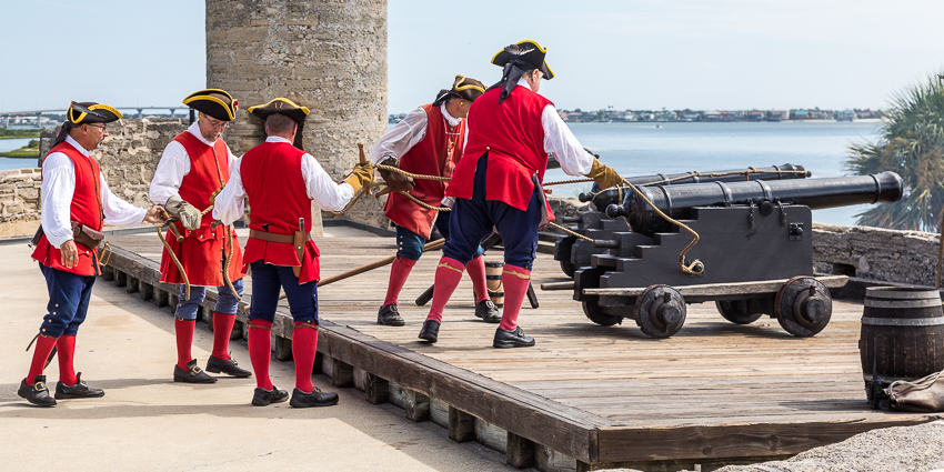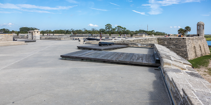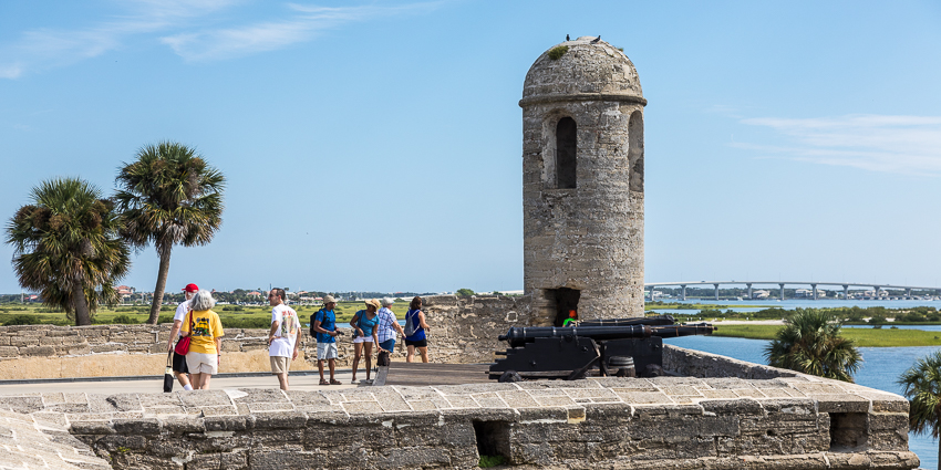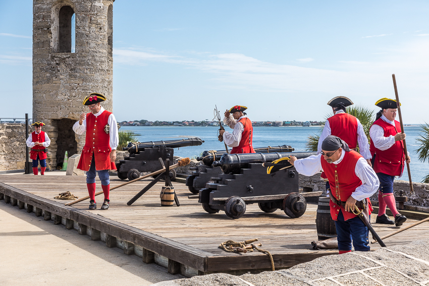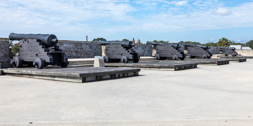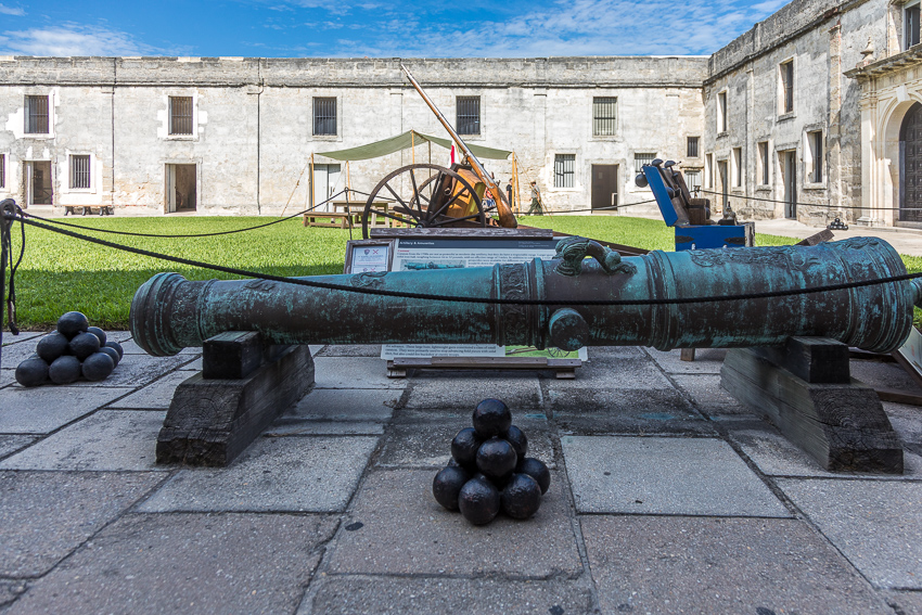 Nach einem Dutzend Donuts und ein paar leckeren „Nesquik“ ging es dann in die Old Town von St. Augustine. Um der großen Hitze zu entgehen, besuchten wir als erstes das „Castillo De San Marco“. Es war gerade 09:30Uhr und trotzdem war die Hitze - sobald die Sonne direkt schien - schon unerträglich. Das Programm wurde aber trotz meckern uns moserns seitens der Jungs „eiskalt“ durchgezogen. Apropos  „eiskalt“. Die einzigen beiden Orte an denen es temperaturmäßig wirklich erträglich war, waren das Klo und der Souvenirshop - beides klimatisiert und gut duftend. Highlight des Castillo’s war dann das authentische Laden und Abschiessen einer alten Kanone. Jetzt weiß ich wenigstens, warum an Silvester manche Böller auch „Kanonenschlag“ heißen.
