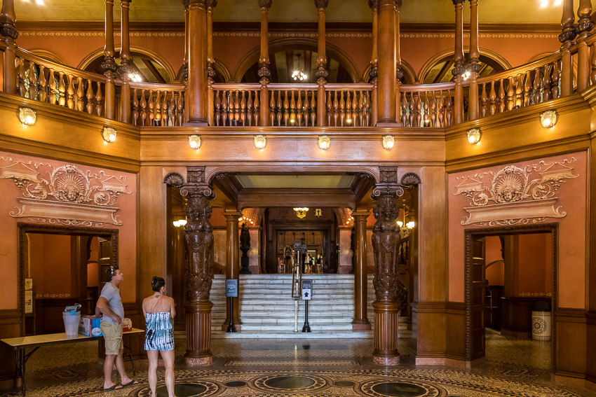 Nach dem „Castillo“ liefen wir durch die historische Downtown bis zum „Flagler College“. Auf dem Weg dorthin gönnten wir uns noch Eis und Erdbeere Smoothies. Das „Flagler College“ ist wirklich eine beeindruckende Bildungseinrichtung, leider war aber nicht jeder Teil zugänglich.