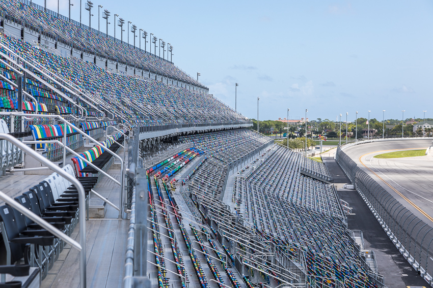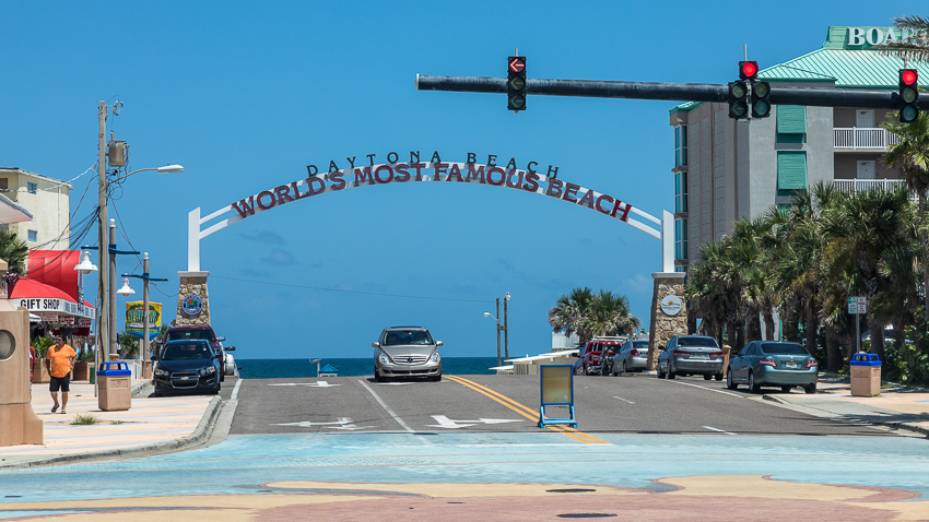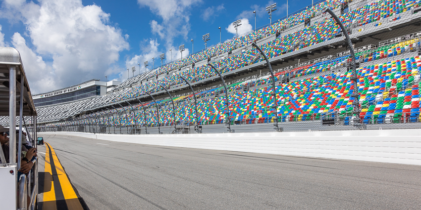 Als ich um 07:00Uhr die Augen öffnete, starrten mich bereits Birgit und Tom an und begrüßten mich mit den Worten: Du schnarchst !!! Wie nett - der Einzige der jetzt noch vor sich hin rasselte war mal wieder Paul. Kurz den Laptop angeschmissen und auf Spotify „Rocket Man“ von Elton John aufgedreht und schon war auch der vierte im Bunde wach. Heute sollte es ja nach Daytona gehen und wir wollten nicht allzu spät los. Als einziger musste mal wieder Paul etwas „angeschoben“ werden. Im Großen und Ganzen lief es aber und wir konnten relativ zeitig auschecken. Unterwegs gab es noch einmal ein Dutzend Donuts, es musste noch einmal etwas schneller gehen. Als erstes wollten wir heute eine Tour auf dem „Daytona International Speedway“ machen. Da man die Tickets nur vor Ort kaufen konnte und ich nicht wußte wie gut diese Touren während der Woche besucht waren, wollte ich nicht zu spät in Daytona ankommen.