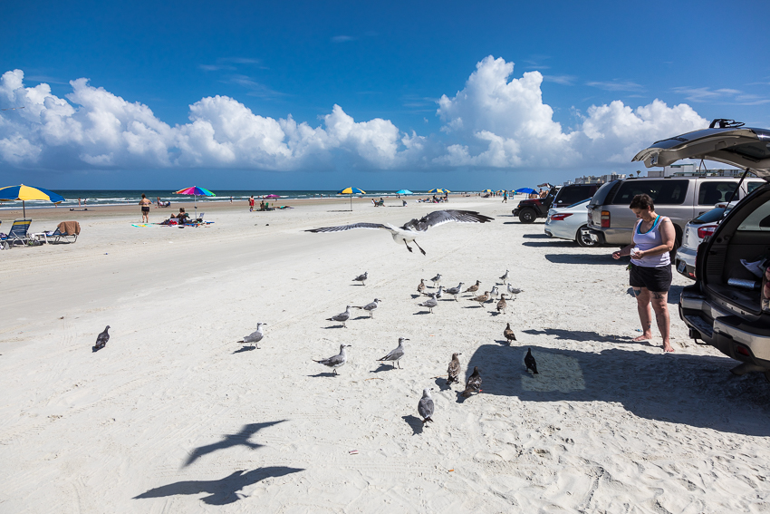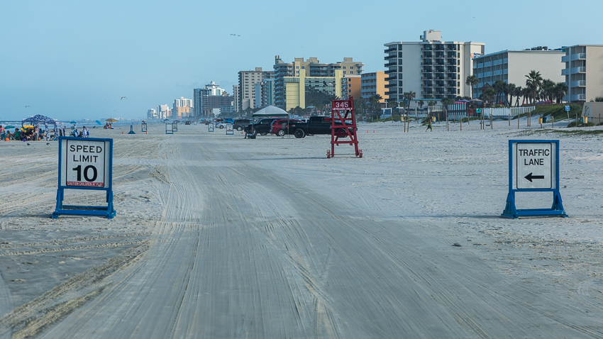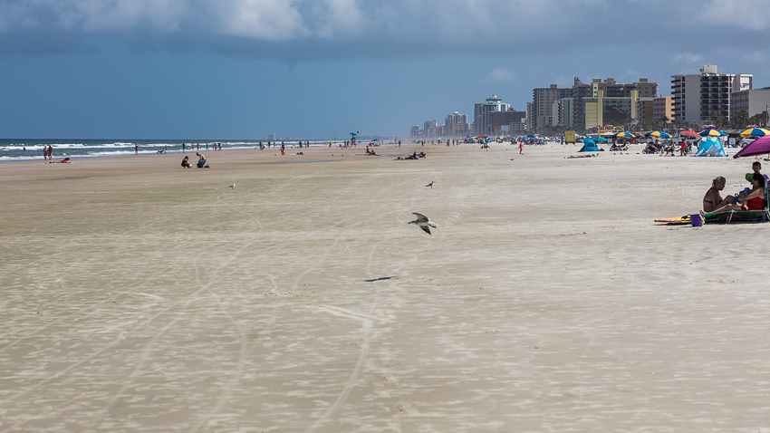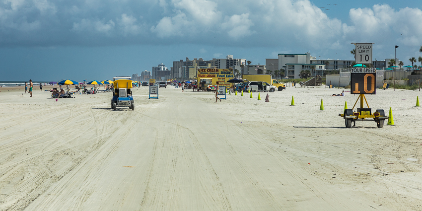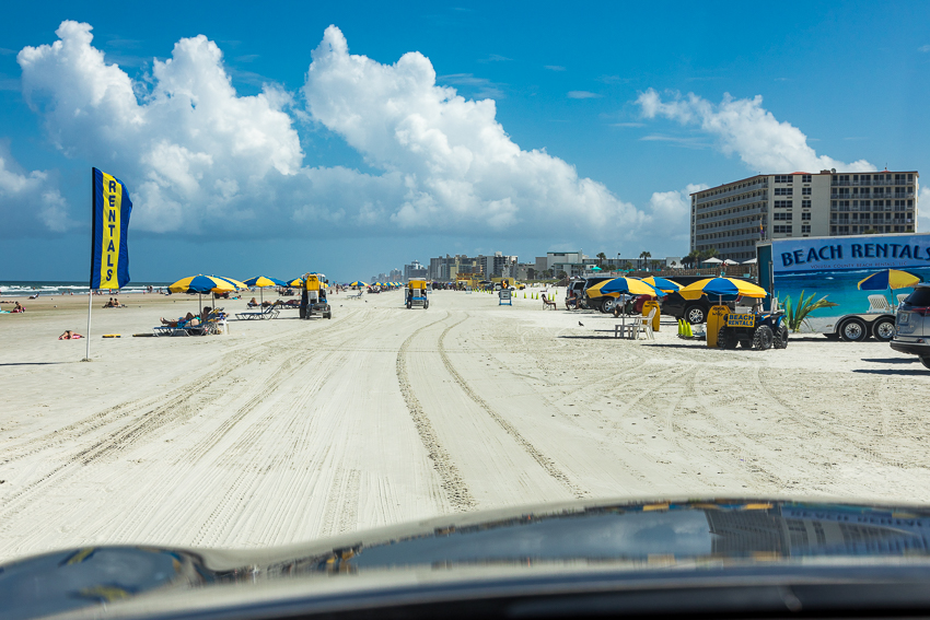 Nach insgesamt rund 2 Stunden auf dem „Daytona International Speedway“ fuhren wir auf der Suche nach einer Unterkunft weiter auf die „A1A“ nach Daytona Beach. Die üblichen Verdächtigen waren aufgrund der direkten Nähe zum Strand eine Nummer zu teuer und so fuhren wir wieder Richtung Speedway. Dort buchten wir uns für eine Nacht in das "Hampton Inn" ein. Kurz umgezogen und schon fuhren wir wieder Richtung Daytona Beach um für 10$ mit dem Auto ein paar Meter auf dem breiten Strand zu fahren. Wir suchten uns einen schönen Parkplatz und dann ging es - wie schon die letzten beiden Tage - wieder in die Fluten des Atlantiks. Auch hier gab es wieder schön hohe Wellen und vor allem die Kinder hatten ihren Spaß.