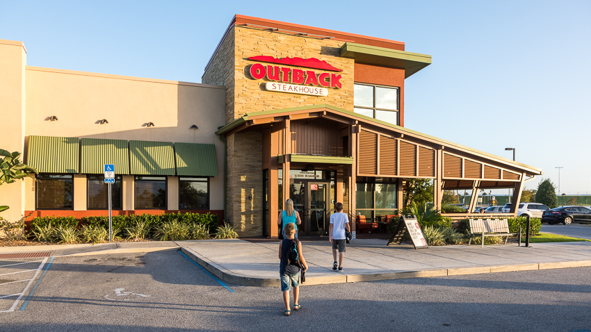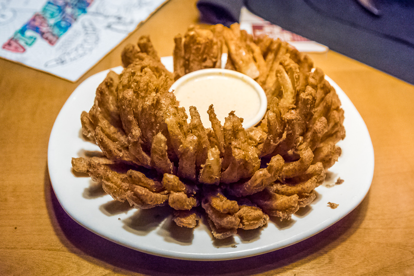 Mittlerweile machte sich auch wieder der kleine Hunger bemerkbar und nachdem alle geduscht hatten, gingen wir zu Fuß ins benachbarte „Outback Steakhouse“. Wir lieben diese amerikanischen „Restaurant“- Ketten, wobei wir die Anzahl der Besuche aufgrund des doch recht hohen Preises dann doch meistens eher niedrig hielten. Lecker war’s jedenfalls. Als Vorspeise hatten wir eine „Blooming Onion“, danach musste jeder dann mehr oder weniger gesättigt noch einen „Outback Burger“ verschlingen.