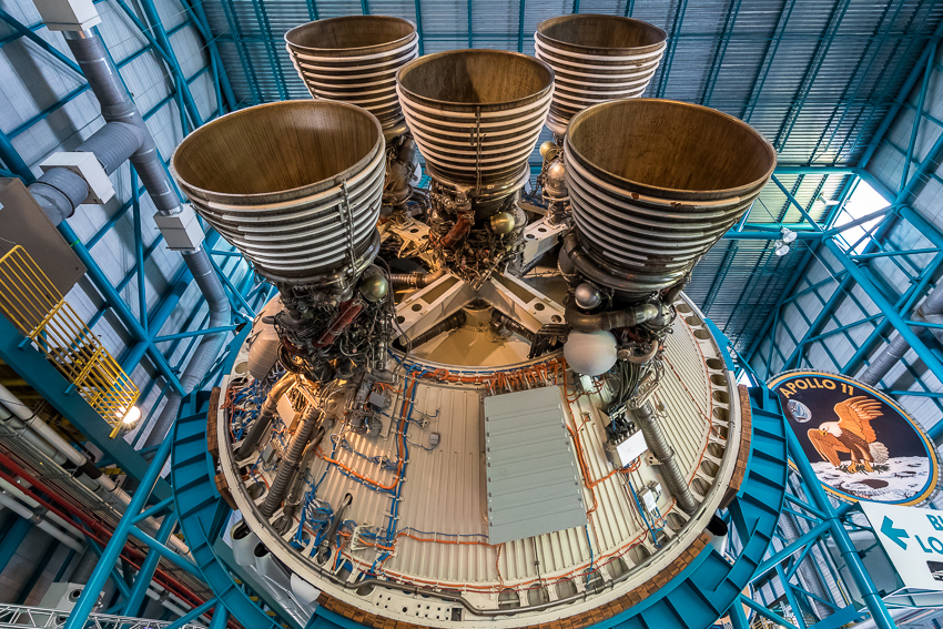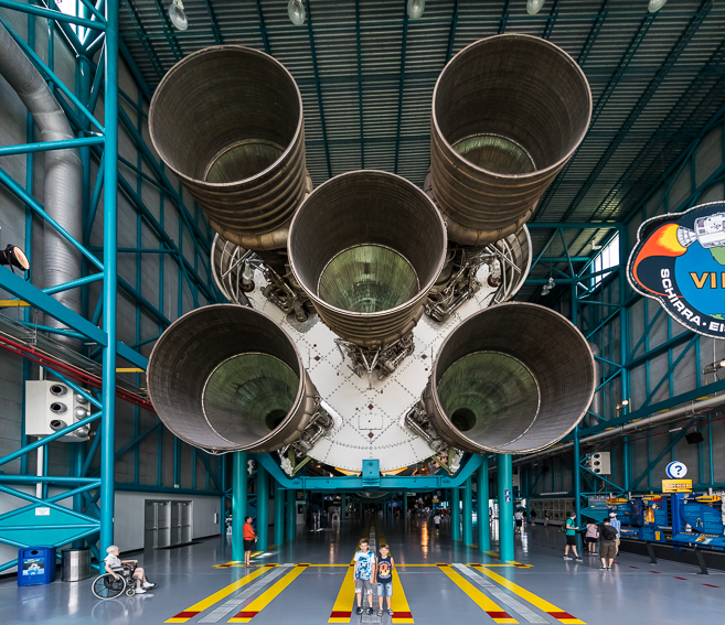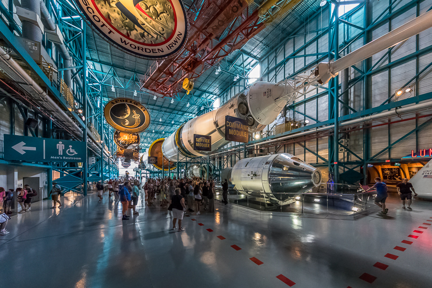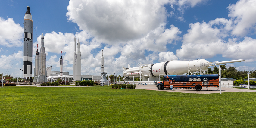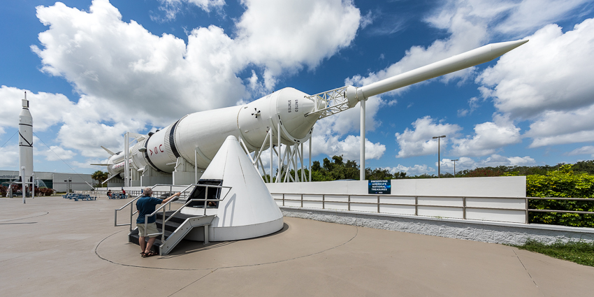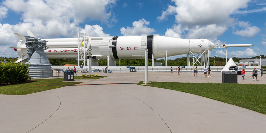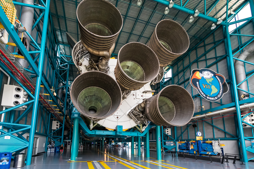 Nach einem kurzen Besuch des benachbarten „Rocket Gardens“ ging es weiter mit der obligatorischen Bustour. Die wurde wohl irgendwann in den letzten paar Jahren um einige Highlights erweitert - darunter das neue SLS- Launchpad (Space Launch System) sowie das modifizierte Launchpad 39A von Elon Musks „SpaceX“ Raketen. Das Highlight der Bustour war dann das „Apollo / Saturn V Center“. Hier wurde eine von weltweit 3 Saturn V Raketen „flach gelegt“. Wir kannten das Ganze ja schon - trotzdem ist das immer wieder ein beeindruckendes Erlebnis.