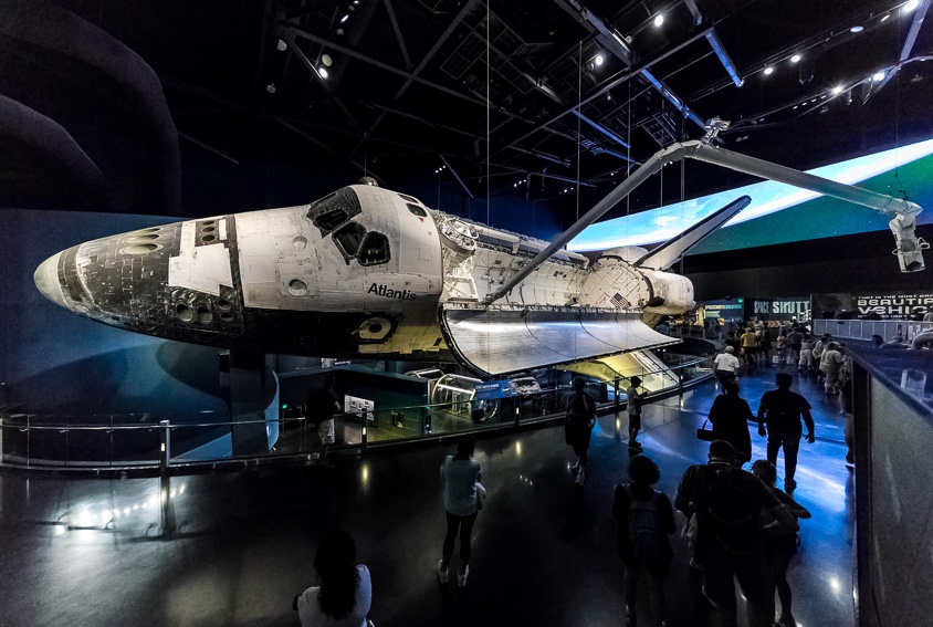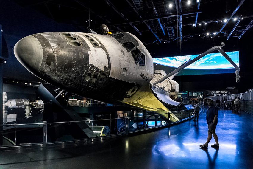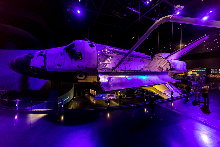 Unsere Ansprüche sind ja wirklich nicht die höchsten (sieht man ja daran, was wir sonst so in uns reinstopfen), aber das schlug dem Fass wirklich den Boden aus. Nach dem „Schmektakel“ ging es dann mit dem Bus wieder zurück zum Visitor Center. Dort besuchten wir noch die „Space Shuttle Atlantis Exhibit" mit dem Shuttle Launch Experience (ein ganz netter Simulator, gibt aber schlimmeres) sowie den IMAX- Film „A Beautiful Planet“. Außerdem bestaunten wir noch den „World's Largest Space Shop“ sowie die gut gemachte Ausstellungen „Journey to Mars“.