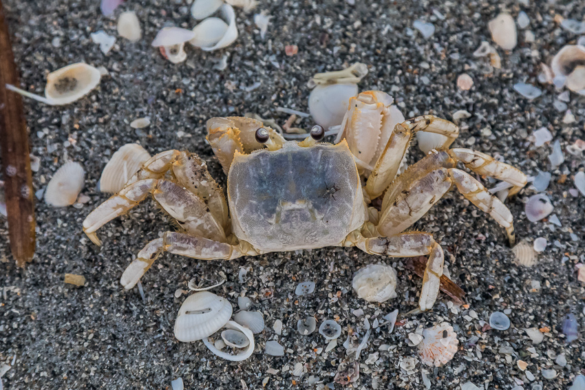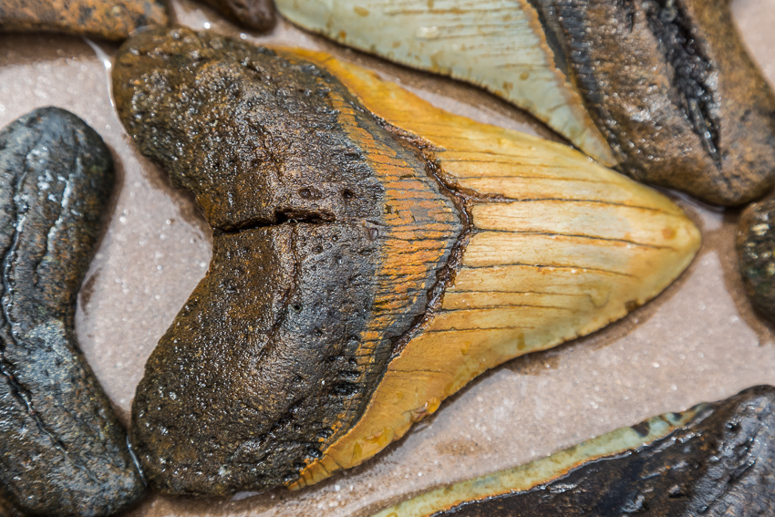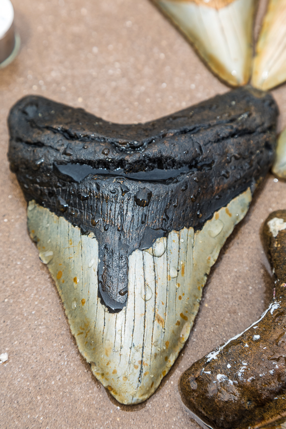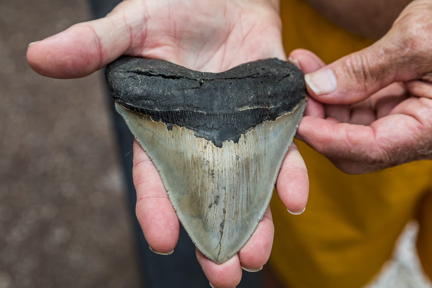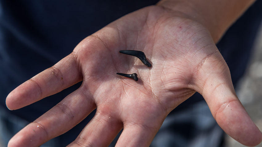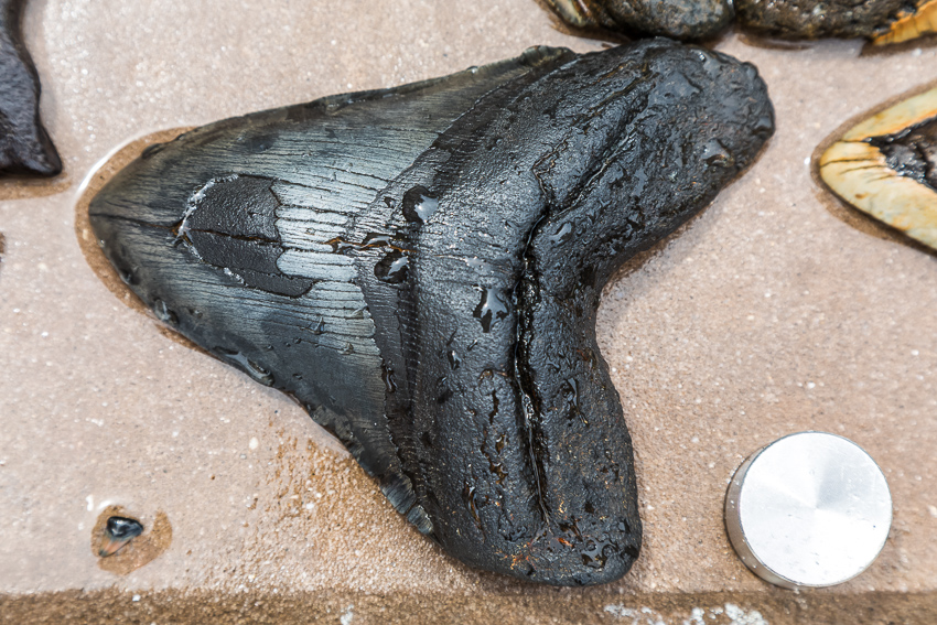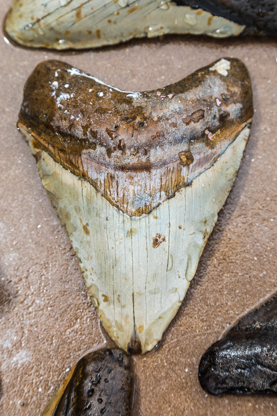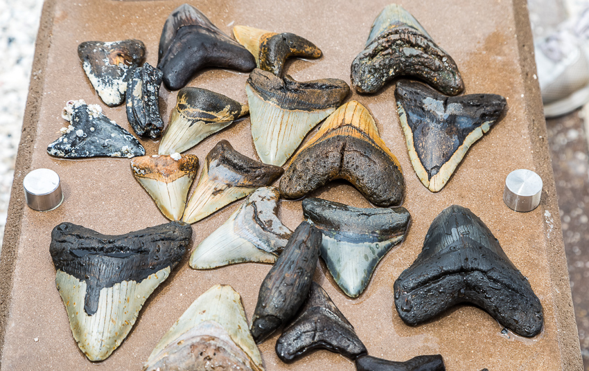 Wir machten uns also ebenfalls an die Arbeit und wurden bereits nach wenigen Ladung mit dem ersten fossilen Haifischzahn belohnt. Wir blieben ca. eine Stunde, dann gaben wir nach fünf Haifischzähnen und drei kleinen aber feinen Muscheln den Kescher zurück. Wir mussten ja noch eine Unterkunft für die heutige Nacht suchen.