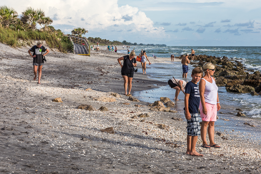 Nach rund 2 Stunden war die Tour dann vorbei und der Hunger trieb uns weiter Richtung heutigem Tagesziel - Venice. Dort schlugen wir uns erst mal den Magen beim örtlichen „Panda Express“ voll. Nachdem der Unterzucker beim einen oder (der) anderen erfolgreich in die Flucht geschlagen wurde, ging es noch in den auf der gegenüberliegenden Straßenseite liegenden Walmart. Für 45$ wurde mal wieder etwas Kleinkram und Knabberzeug gekauft. Nachdem alles ins Auto verladen war, machten wir noch einen kleinen Abstecher zu unserem morgendlichen Ziel - dem „Caspersen Beach“. Dort sollte man wunderbar fossile Haifischzähne sammeln können.