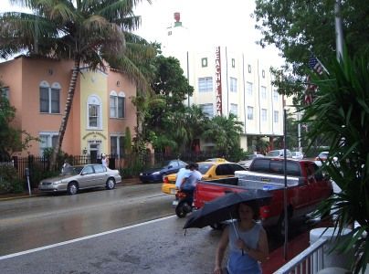 Heute wollten wir uns Miami Beach angucken. Nach einer halben Stunde erst mal Zwangspause, wegen Wolkenbruch.