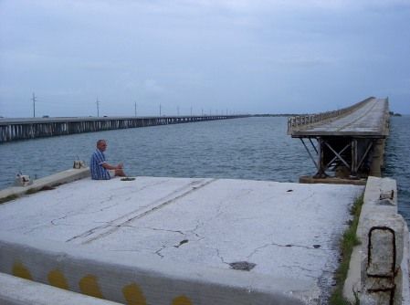 Dann ging es über den South Roosevelt Blvd welcher hier die A1A ist zum Highway 1  und unsere Rückfahrt über 42 Brücken begann nun wieder. Jetzt sollte uns  auch der Vorteil  unseres Auto  zu gute kommen. Da wir sehr hoch saßen konnten wir gut über die Geländer gucken und die Seelandschaft genießen. Auf der Fahrt zum Bahia Honda Key State Park erinnern Überreste von Flaglers alter baufälliger Brücke neben der neuen Verbindung an die Vergangenheit.