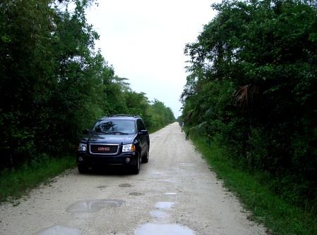 Am Wegesrand befanden sich viele Baumschulen und Gärtnereien in denen man Palmen kaufen konnte. Wir ließen es aber, denn so viel  Kg an Gepäck würde sicher auffallen; außerdem hätten wir dann kaum noch Platz auf unserem heimischen Balkon. Dann erreichten wir die US 41 und bogen links auf ihr rauf. Diese war gesäumt von ökologisch bedenklichen Ausflugangeboten in den Everglades. Die meisten waren aber heute wetterbedingt geschlossen. Am Shark Valley Visitor Center fragten wir am Eingang, ob die Loop Road bei diesem Wetter auch befahrbar ist. Man sagte uns das es keine Schwierigkeiten geben dürfte. Den Hinweis für diese Loop Road bekamen wir hier im Forum, und dieser erwies sich als voller Geheimtipp. Geheim soviel das wir auf unserer Fahrt dort nur vier andere Autos getroffen haben. Und am Straßenrand, als wir einmal hielten, einen Haufen Knochen fanden von denen wir hoffen das sie wilden Tieren gehörten Das erste Viertel der Strecke ist noch geteert, und dann geht es über eine holprige Piste weiter. Da wir ja die schlimmste Regenzeit erwischt haben waren auch die Löcher mit Wasser gefüllt und wir jedes mal ein mulmiges Gefühl hatten dadurch zu fahren, denn wir wussten ja nicht wie tief sie waren