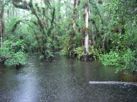 Bei der Monroe Station bogen wir wieder links auf den Tamaimi Trail und hielten erst wieder  am H.P. Williams Roadside Park an. Hier sollte man auch sehr gut Aligatoren besichtigen können. Aber nur eins wartete im strömenden Regen auf uns, so das der Halt nicht ganz umsonst war. Noch mal unseren Dank an Ihm. Der Sturm nahm immer mehr an Stärke zu und wir fragten uns, was da noch auf uns zu kam?