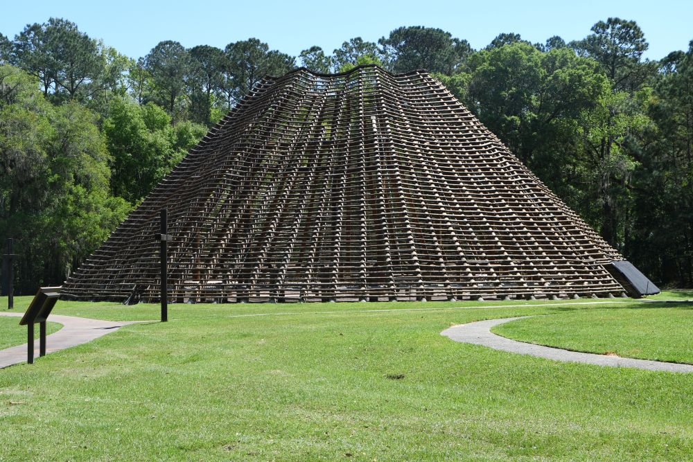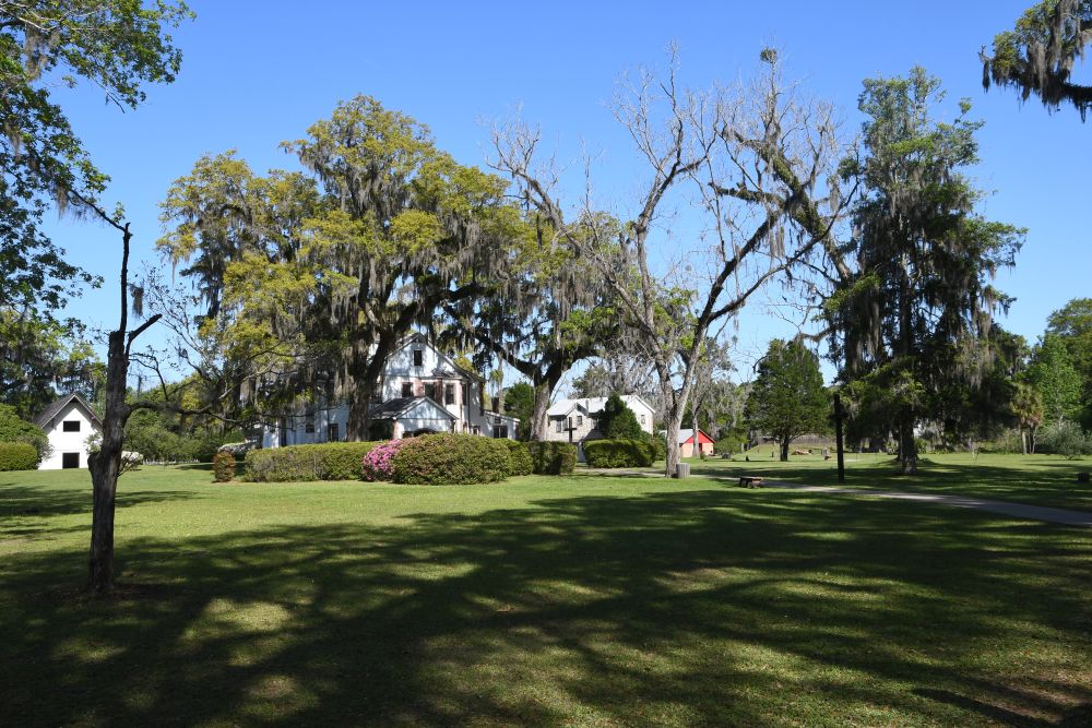 Der letzte Tag hier und wir machen uns diesmal gleich nach dem Frühstück auf den Weg. Die Wettervorhersage sagt für den Nachmittag Regen und „severe thunderstorms“ voraus, da wollen wir zuerst noch etwas draußen machen. Ein paar Meilen von unserem Cottage befindet sich der Dudley Farm Historic State Park, der rund um eine alte Farm gelegt wurde. Es gibt dort ein Visitor Center und viele Mücken und dann einen kleinen Weg zum eigentlichen Farmgelände. Hier kann man das Haupthaus, die Küche und einige Nebengebäude (Räucherhaus, Zuckerrohrverarbeitung, General Store, Stallungen, Waschhaus) besuchen. Die Kinder finden es toll und spannend und fragen viel. Zwei Damen in historischen Gewändern machen auch gerade eine Führung und lustigerweise ist eine von beiden vor 15 Jahren aus Ravensburg – und damit nur einen Steinwurf von unserer Heimat am Bodensee entfernt – in die USA ausgewandert. Spontan wird die Führung zweisprachig, was für die Kinder natürlich ein großer Vorteil ist. Simon und Anna dürfen auch helfen, sie können mit einer Maschine Mais vom Kolben hobeln und den Hühnern bringen, die Zuckerrohrpresse betreiben und im alten Store Kaufmannsladen spielen. Total schön und am Ende gehen sie mit frischen Eiern und Orangen vom Baum glücklich nach Hause. Uns Eltern hat es auch gut gefallen.