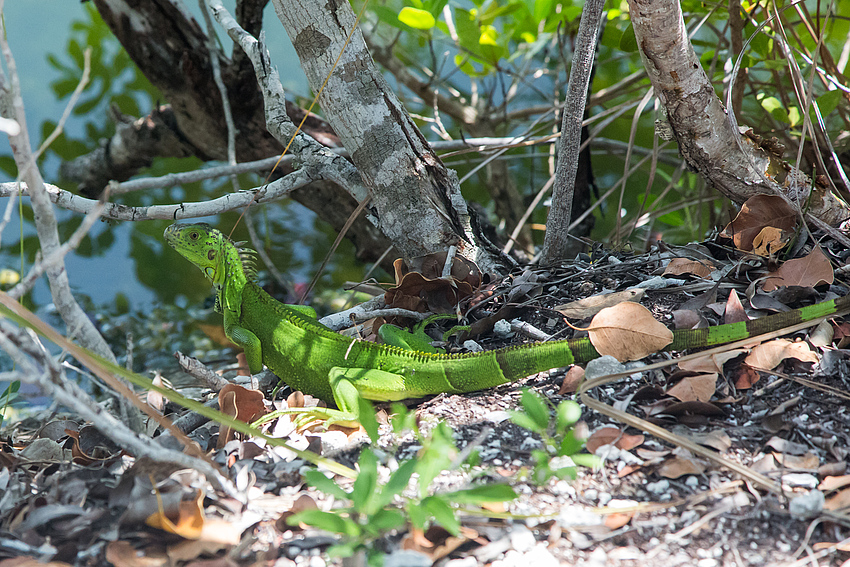 Wie sich später noch herausstellte, war dies die richtige Entscheidung. Die Fahrt sollte gegen 15.15 losgehen, wir hatten also noch rund eine Stunde Zeit bis zum Ablegen. Während Birgit mit den Kinder an den kleinen Strand in der Nähe des Visitor Center‘s ging, erkundete ich den direkt am Parkplatz liegenden Grove Trail. Dieser war im Plan als Rundweg eingezeichnet. Nach knapp 10 Minuten erreichte ich eine große Wiese, an der es nicht mehr weiterging - zumindest nicht offensichtlich. Also drehte ich kurzerhand um und lief den Weg wieder zurück. Der Trail war nichts besonderes, außer ein paar schönen aber zackig umherfliegenden Schmetterlingen, sowie hunderten von kleinen Eidechsen, gab es nichts besonderes zu entdecken.