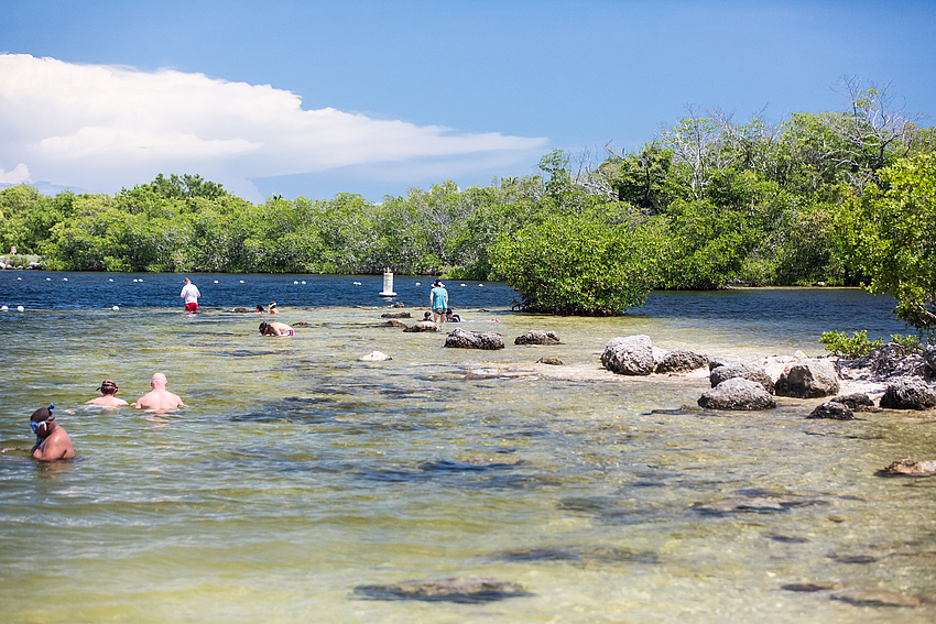 Nachdem alle satt waren, machten wir uns auf, die restlichen Meilen bis zum John Pennekamp State Park hinter uns zu bringen. Dort kamen wir dann gegen 14.15 an. Der erste Besuch führte uns ins dortige Visitor Center. Wir bestaunten das große Aquarium und die einheimischen Fische. Nach einer viertel Stunde gingen wir dann ins gegenüberliegende Gebäude, wo man die verschiedenen Touren zum Riff buchen konnte.