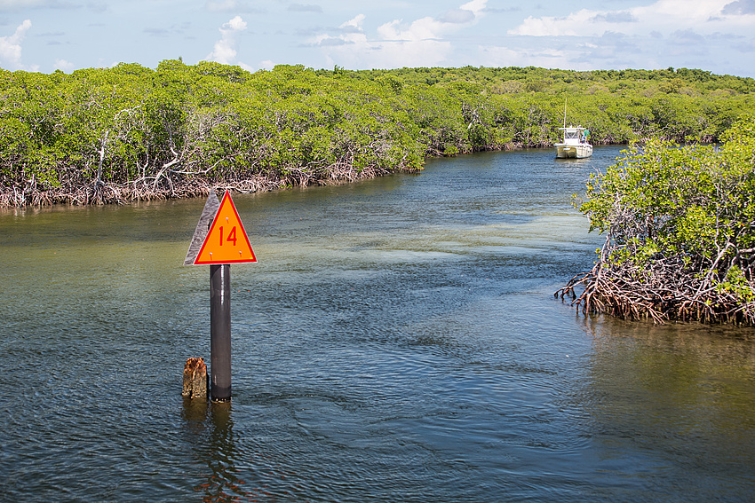 Wir verliessen Key West und kamen nach einer knappen Stunde Fahrzeit in Big Pine an. Dort machten wir einen kleinen Abstecher zum Blue Hole, in dem es laut Reiseführer Alligatoren und Schildkröten geben soll. Wir waren die einzigen Besucher, überlaufen sieht also anders aus.