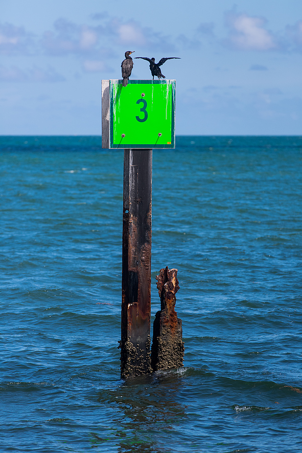 Der nette Herr, er wohnte nur ein paar „Meter“ weiter, erklärte uns, dass es im Blue Hole insgesamt 3 Alligatoren gäbe. Einen 6 Feet, einen 8 Feet „mit großem Kopf“ und ein kleineres Exemplar - wahrscheinlich ein Weibchen. Wir hatten gerade das mittlere Exemplar vor uns. Es gibt sogar einige Tarpons in dem See. Nachdem ich darüber etwas verwundert war, erklärter er uns, dass es vor einigen Jahren aufgrund eines Sturmes mal eine Überschwemmung gab die bis zur Höhe der Aussichtsplattform reichte. Und dabei wurde wohl so allerlei Getier in den See geschwemmt. Wer also auf den Weg nach Key West oder zurück etwas Zeit mitbringt, kann ruhig mal einen kleinen Abstecher zum Blue Hole wagen.