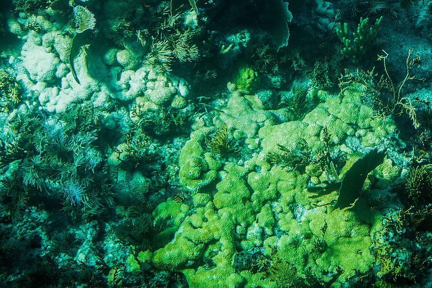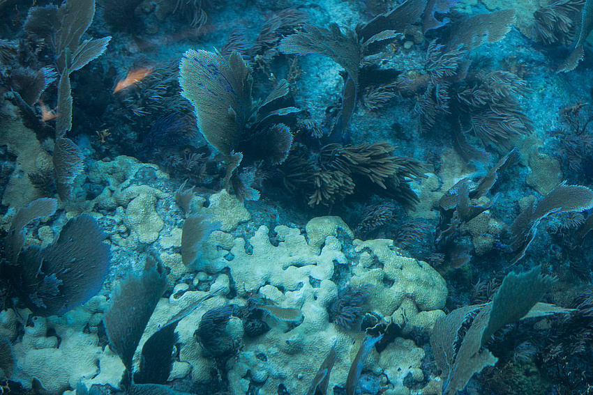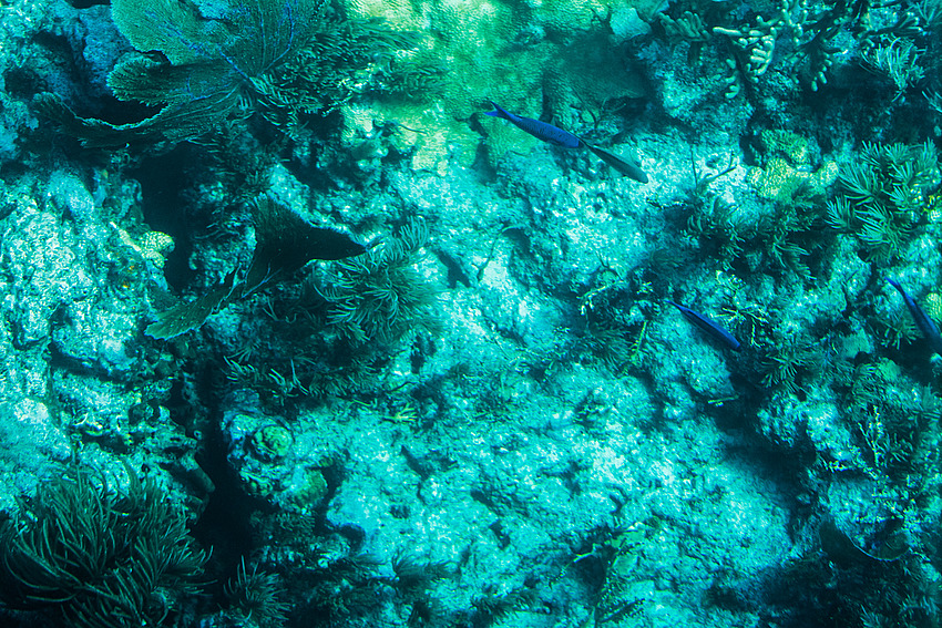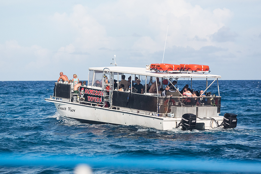 Nach weiteren 20-25 Minuten, kamen wir dann am Riff an und der Captain drosselte die Geschwindigkeit. Wir sahen viele Fische und auch einige Quallen - leider keinen Hai. Gleich nebenan war noch ein Boot mit Tauchern.