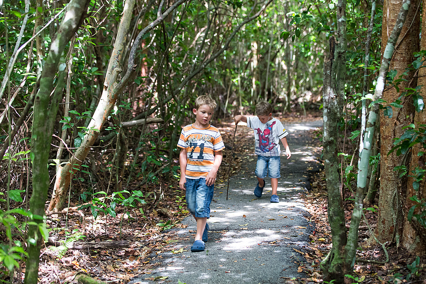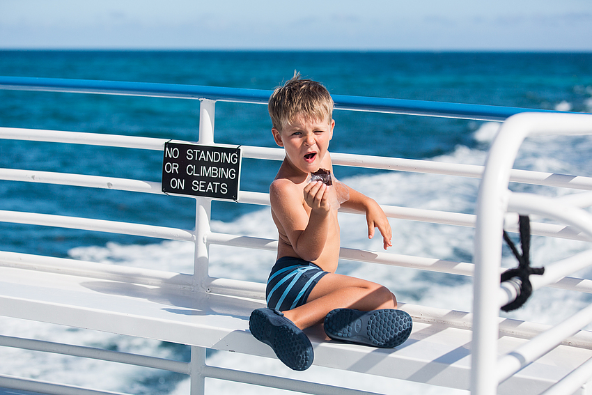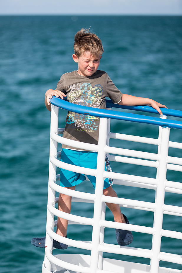 Wir rauschten Richtung Riff. Laut den beiden Mädels, die die Erklärungen zum Riff und den dort lebenden Fischen machten, lag der Wellengang bei 2-3 Fuss, und wir waren froh nicht doch die Schnorchel-Tour gebucht zu haben. Dafür waren unsere beiden Zwerge dann doch noch zu jung. Tom und Paul hatten jedenfalls auch bei der Fahrt mit dem Glasbodenboot ihren Spaß und waren begeistert.
