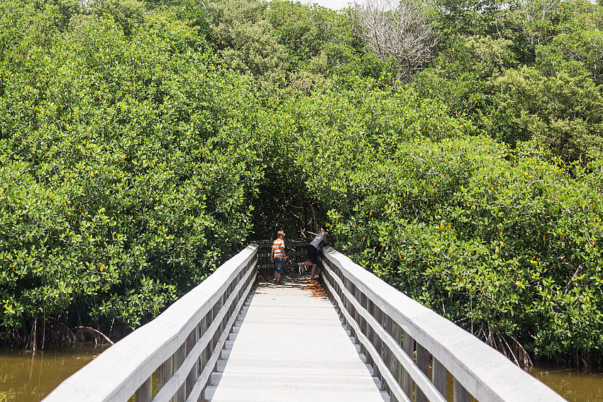 Nachdem wir die beiden ausgiebig bestaunt hatten, gingen wir bei gefühlten 100° C weiter. Unterwegs sahen wir noch 2 weitere Alligatoren die gemächlich im Wasser schwammen. Kurz vor Erreichen des Parkplatzes führte uns dann noch der Gumbo Limbo Trial tief in die Mangroven hinein. Nett, aber nicht unbedingt ein Muss. Nach etwas über einer Stunde erreichten wir dann wieder unser Auto und liessen den Erfinder der Klimaanlage hochleben.