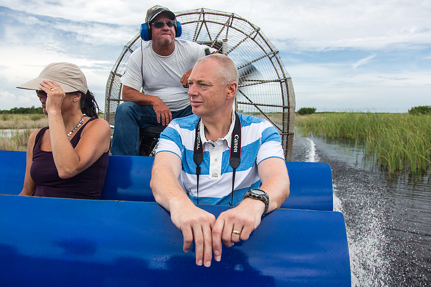 Nach 10 Minuten kam ein großer PickUp Truck und hielt an. Ein großer, sympathisch aussehender Mann stieg aus und begrüßte und freundlich. Es war der Besitzer, der uns erklärte, das am Sonntag keine Fahrten stattfinden - bei ihm zumindest. Er hatte uns schon einige Minuten zuvor gesehen und wollte uns nicht den ganzen Sonntag dort stehen lassen. Ich fragte nach einer Alternative, und er erklärte und kurz den Weg zu „Everglades Private Airboat Tours“. Dies sei der „Schwesteranbieter“, der einzige Unterschied bestünde wohl darin, das diese nicht die Funkkopfhörer hätten. Na gut, wir werden die Tour auch ohne Funk überleben.