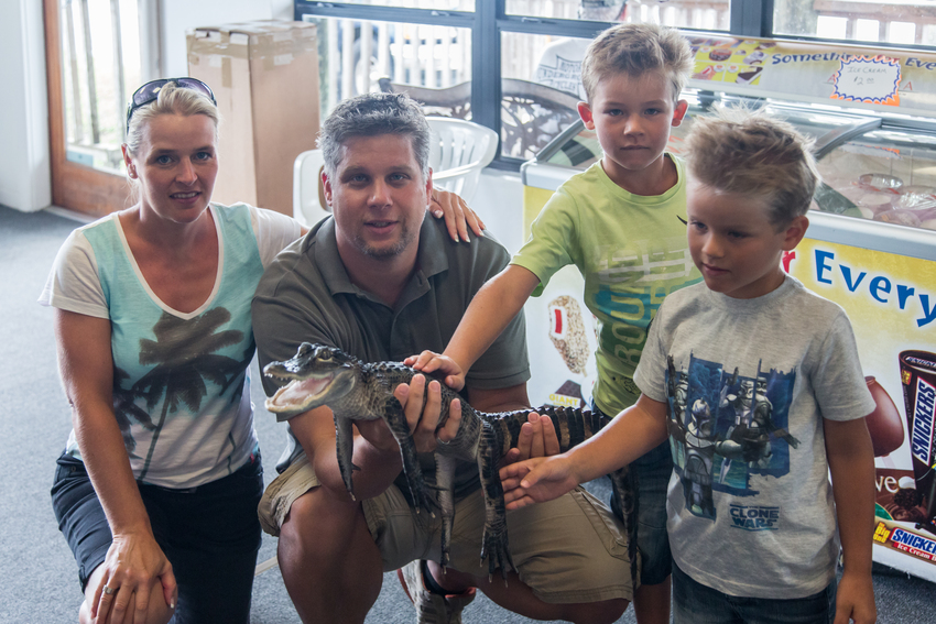 Nach knapp über 50 Minuten Speed durch die Sümpfe, kamen wir dann wieder am Ausgangspunkt unsere Fahrt an. Der Fahrer bekam noch 10$ Tip, da deren Verdienst zum Großteil aus diesen Trinkgeldern besteht. Dann konnten wir noch die beiden Jungalligatoren in die Hand nehmen und etwas begrabbeln. Die beiden Jungs zierten sich erst etwas, aber Paul übernahm dann die Initiative und Tom lies sich nach kurzem Überlegen dann auch nicht mehr bitten.